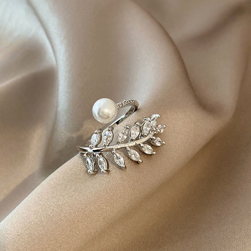 ジルコンの葉真珠の指輪の女性の大衆は冷たい風を設計します。