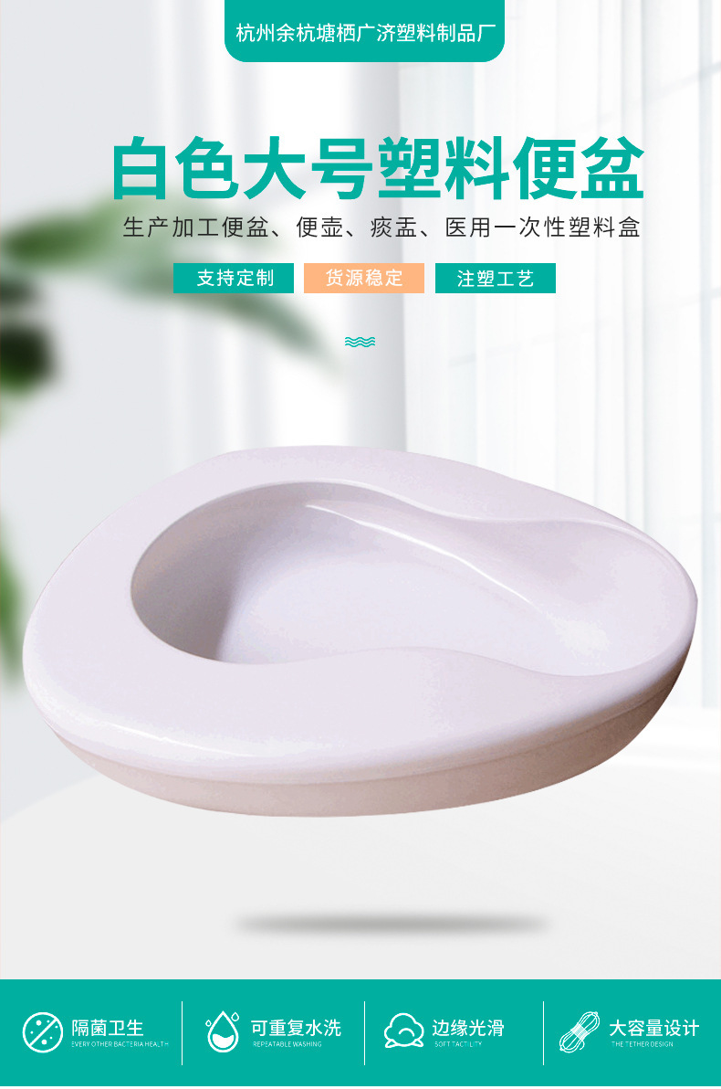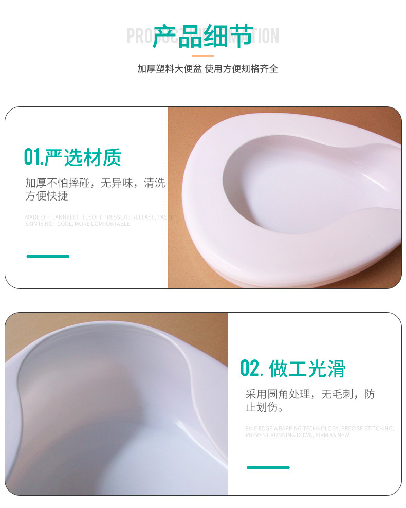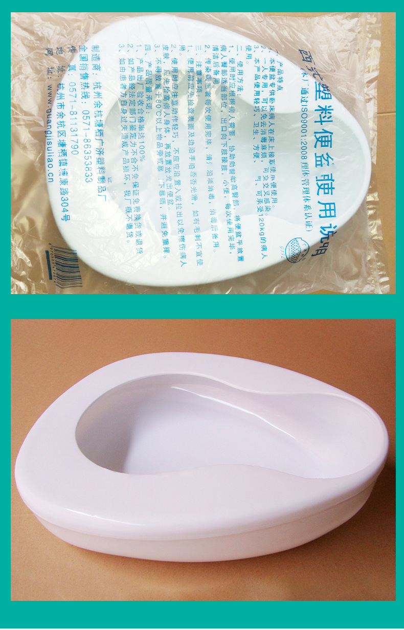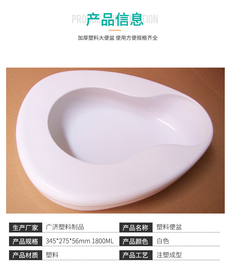 塑料白色大便盆,病人一次专用,注塑料成型  产品克重328±15g规格345*275*56mm1800ml,外包装为编织袋包装,24个每包,快递或物流建议纸箱包装的,外加4毛钱一个,本产品出口外贸优良品.欢迎订购!