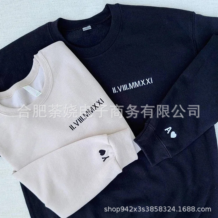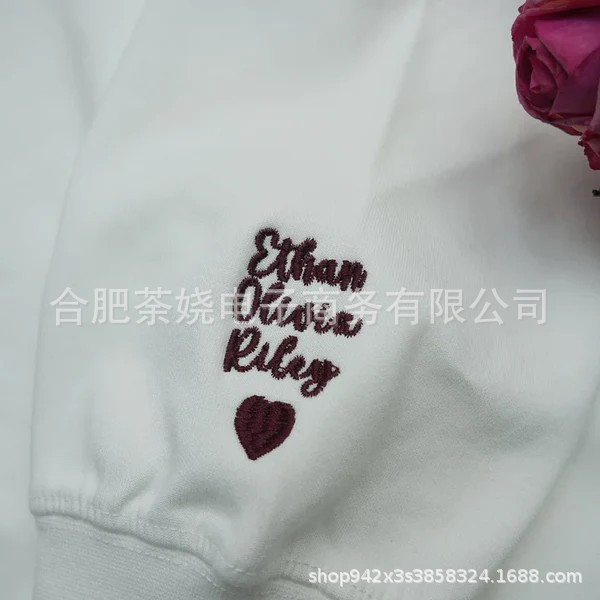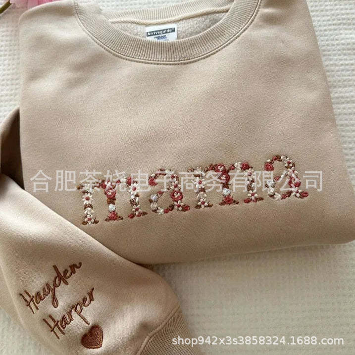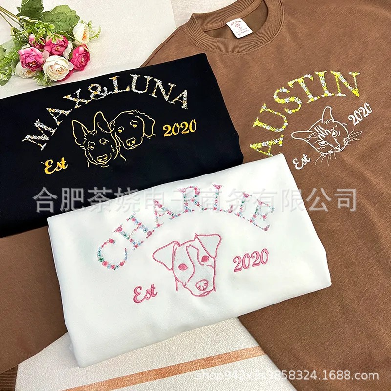 国境を越えた人気の大きな文字と小さな花の名前ペットの猫と犬のアバター線画刺繍カスタマイズされたラウンドネックスウェットシャツ