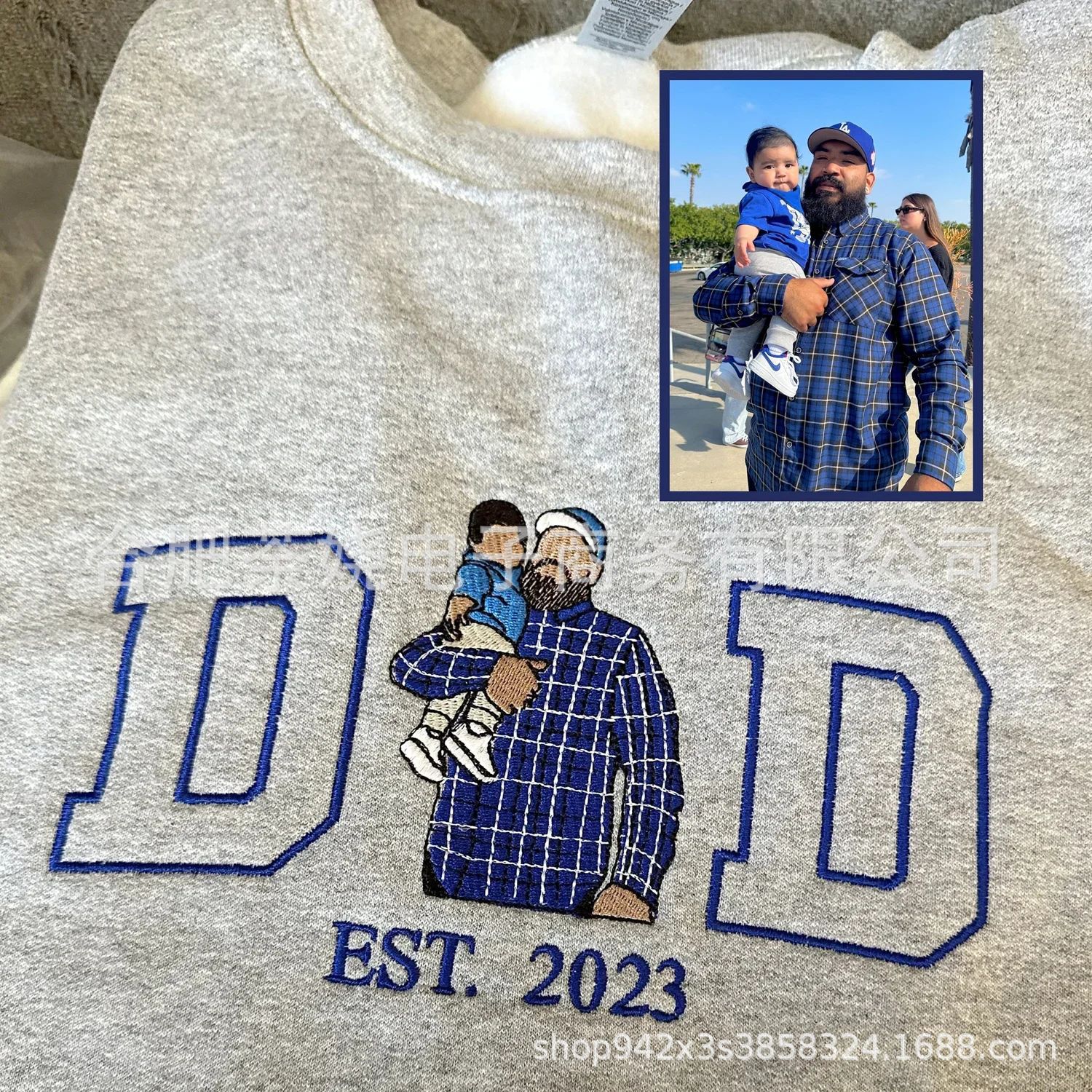 クロスボーダー父の日ホットフォトレターDADスウェットシャツパーカーカラー絵刺繍スウェットシャツカスタマイズ