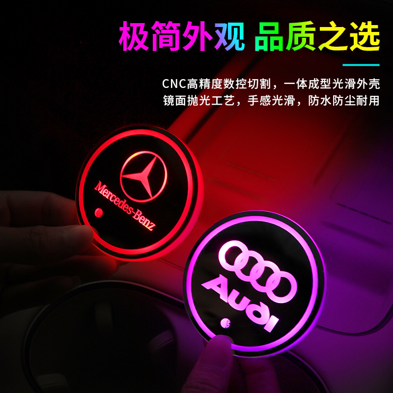 车载发光水杯垫USB充电七彩色LED防滑杯垫汽车用品车载内饰氛围灯