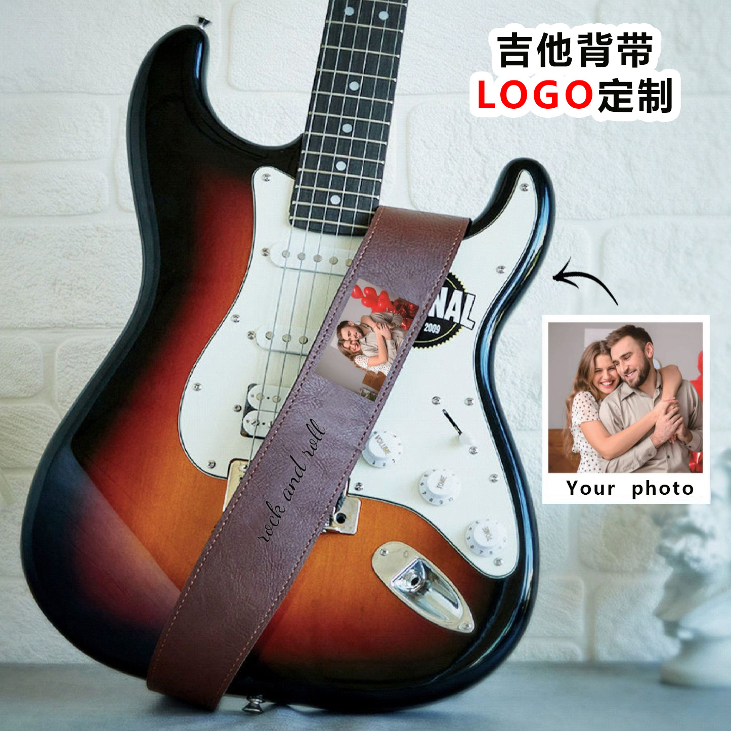 UVカラー印刷ギターストラップ、カスタム両面レザーエレキギター、友人、恋人、父の日ギフト、カスタム刻印