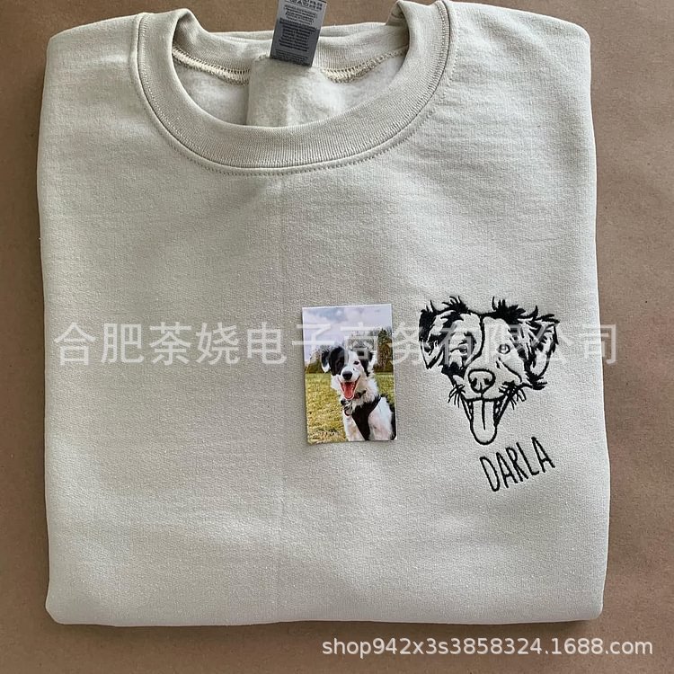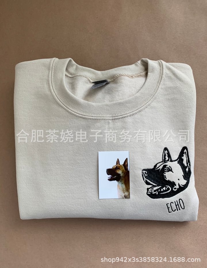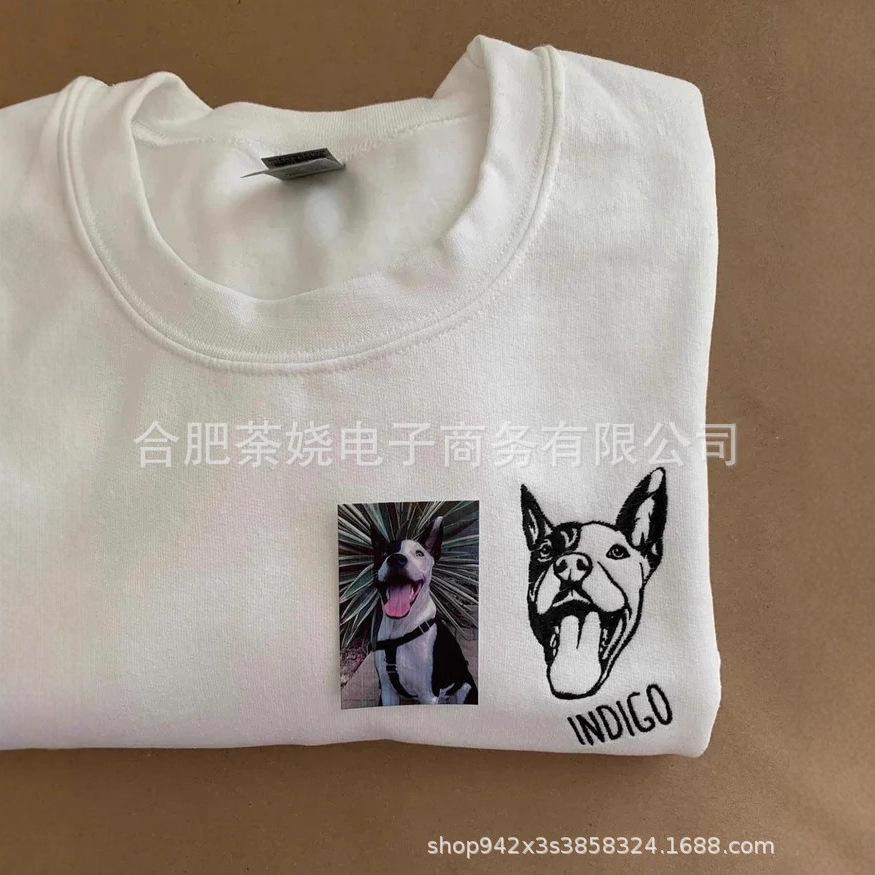 跨境爆款刺绣圆领照片线条艺术轮廓画宠物一件定制刺绣卫衣圆领