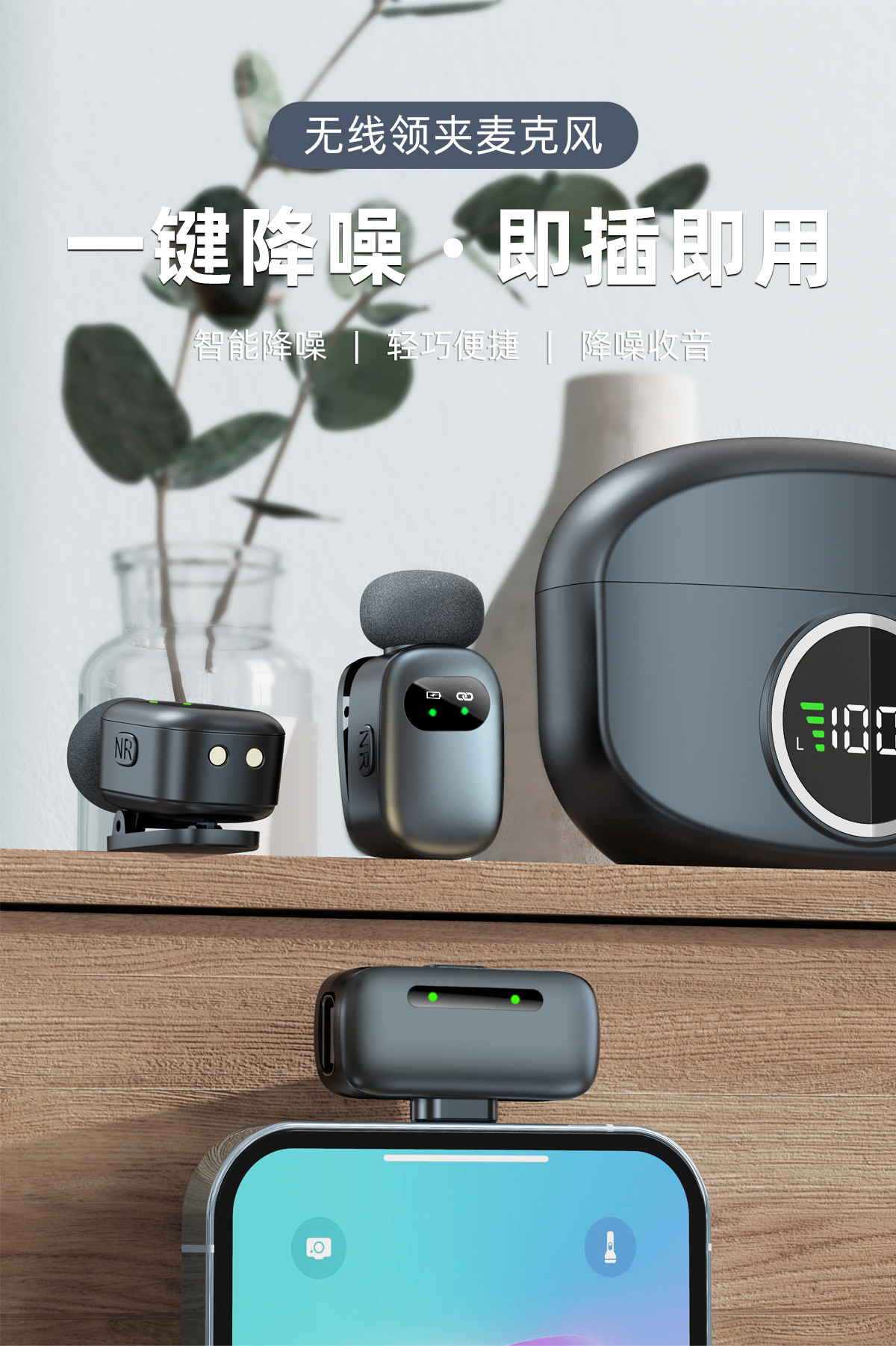 2025私模新款迷你无线领夹麦克风智能降噪话筒直播专用收音麦克风
