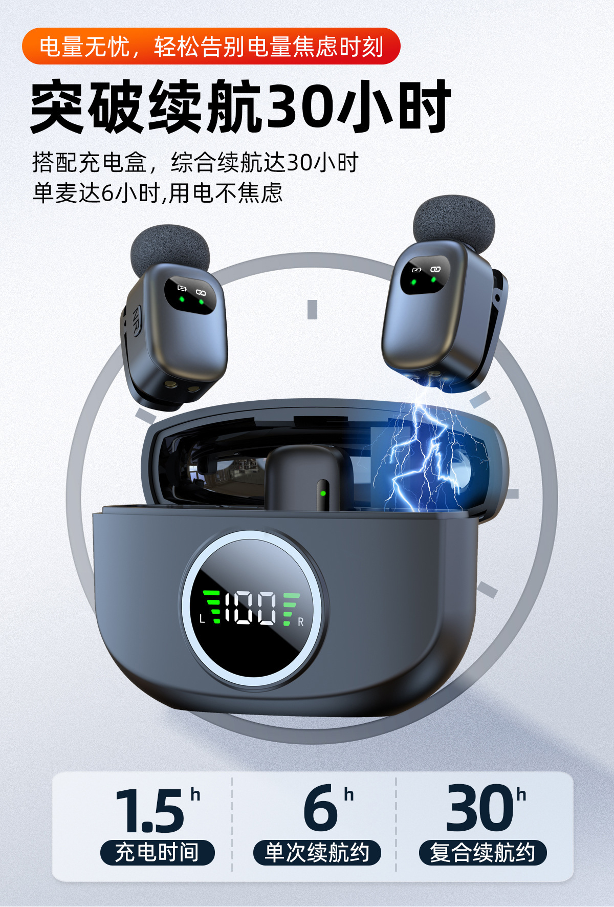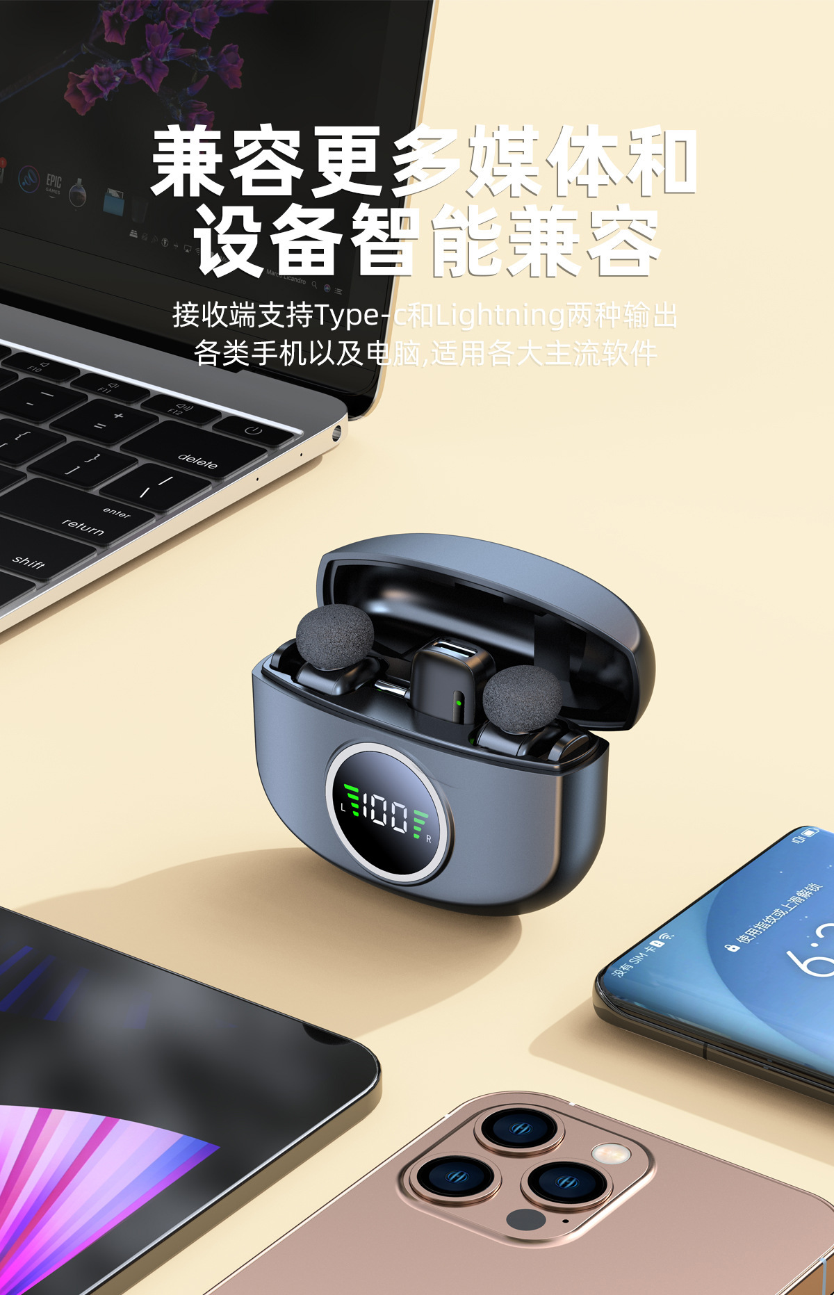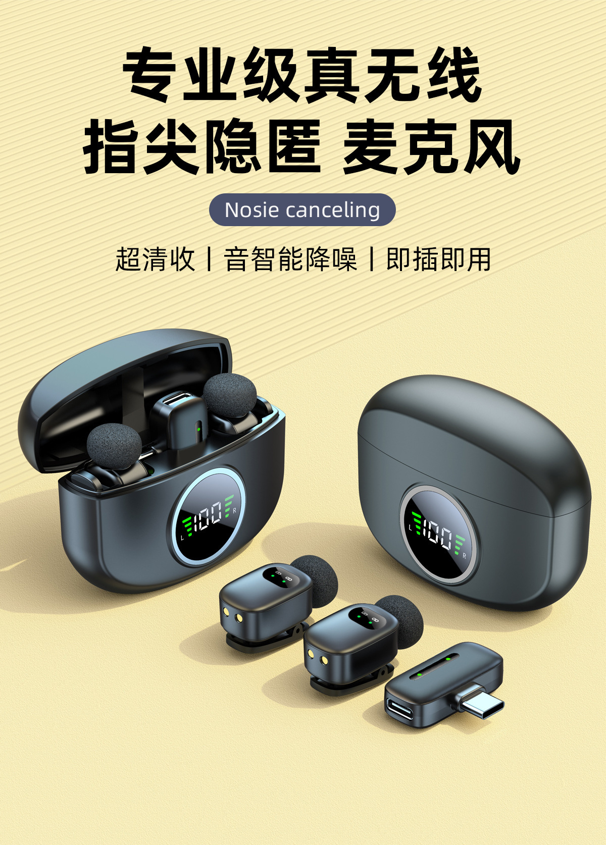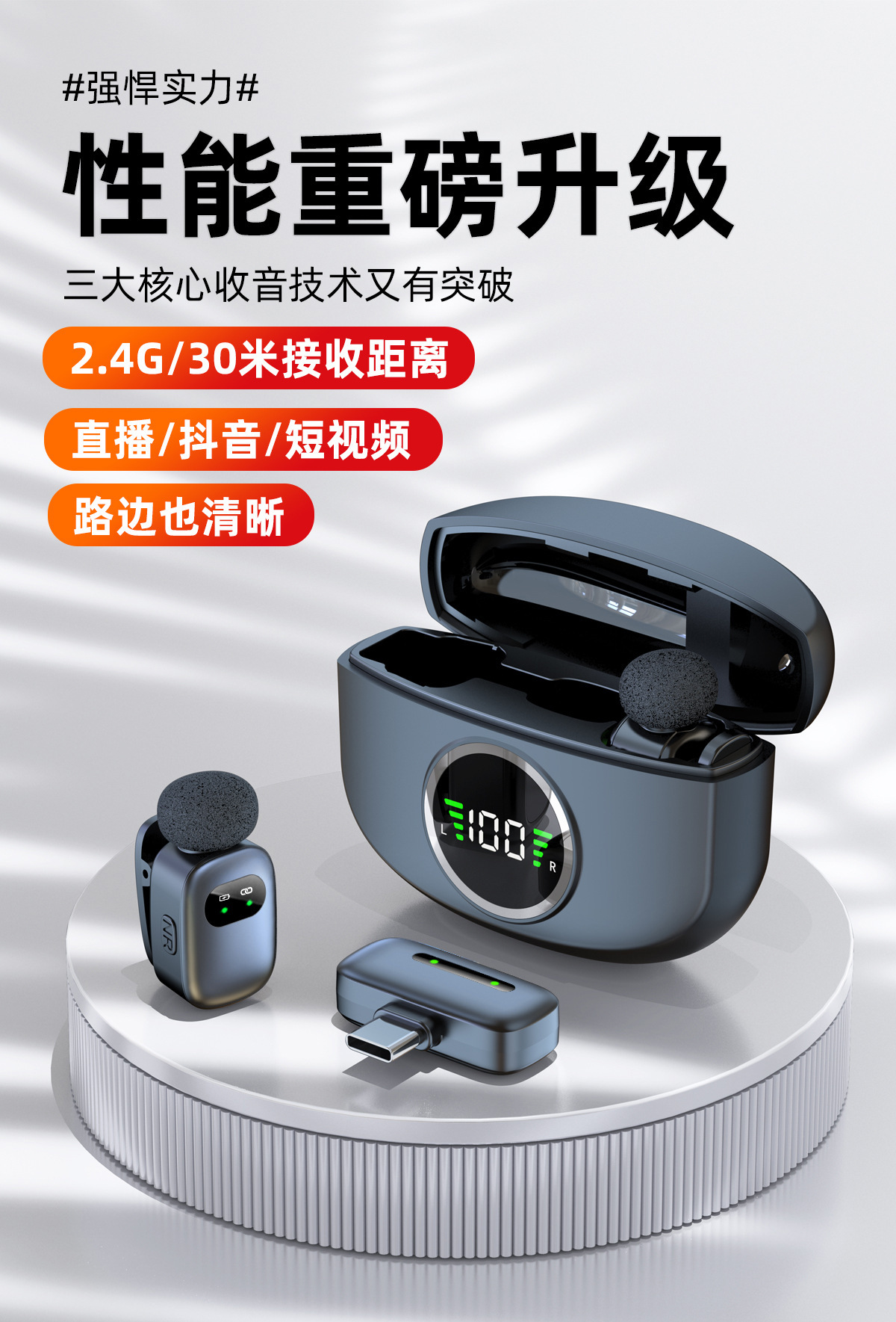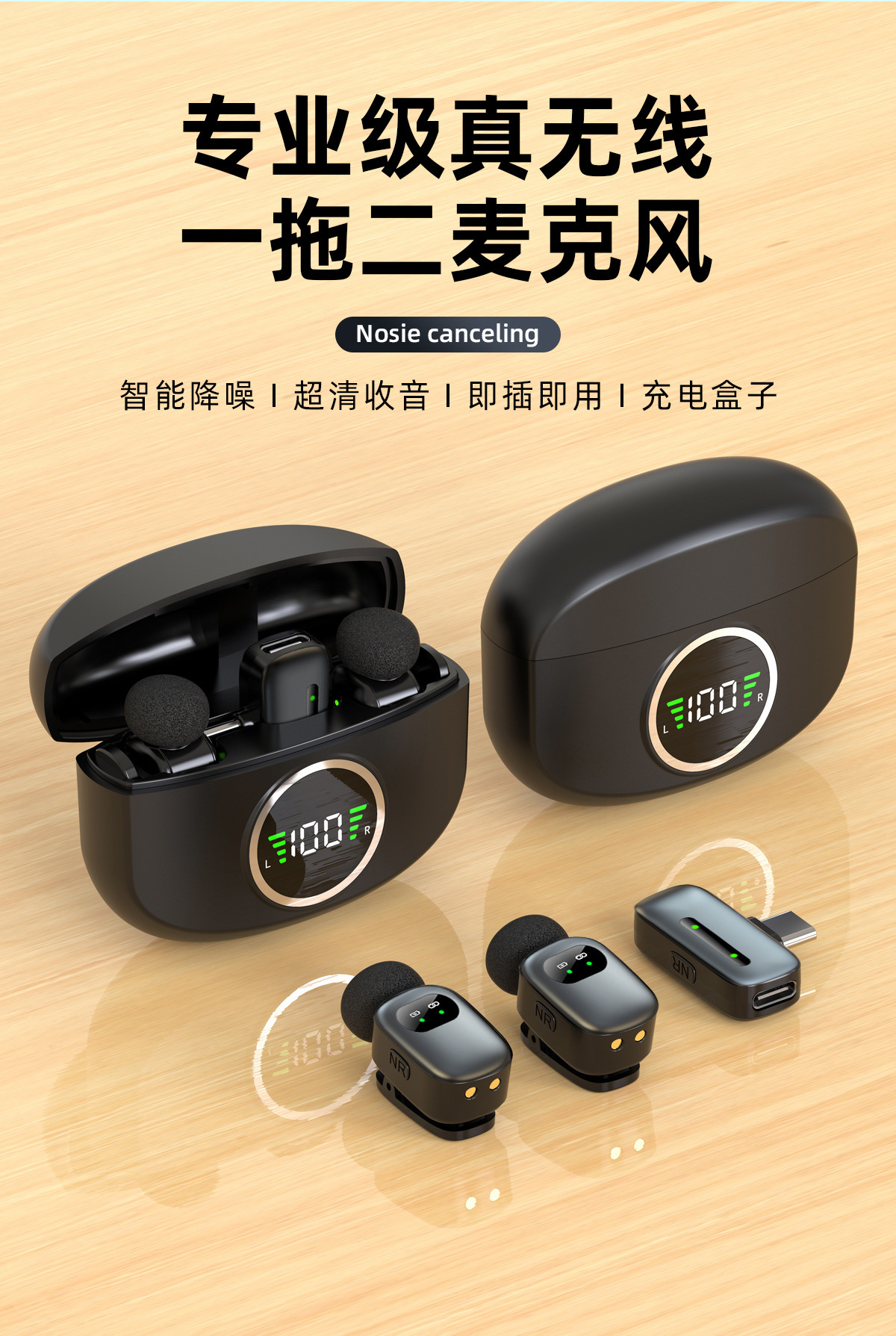 新商品クロスボーダー充電倉庫デジタル録音マイク無線クリップマイク携帯電話は貨物を持って生放送して音を収めます。