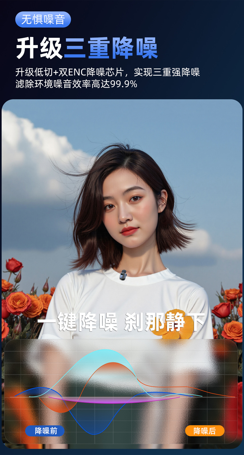2025年の新型ワイヤレスイッパーマイクのワンタッチでノイズの残響を低減できます。