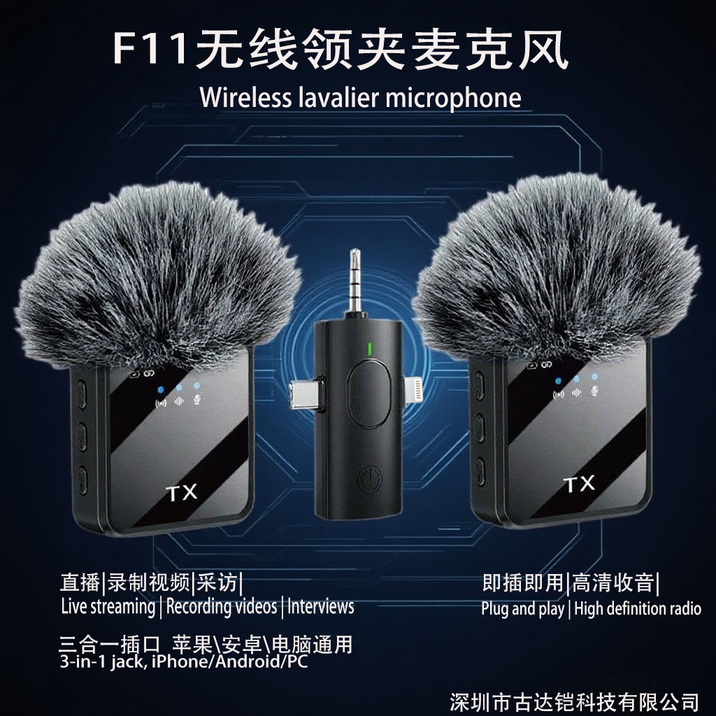 国境を越えた人気のF11ワイヤレスラベリアマイクスリーインワン携帯電話ライブブロードキャストマイク小型マイクF15