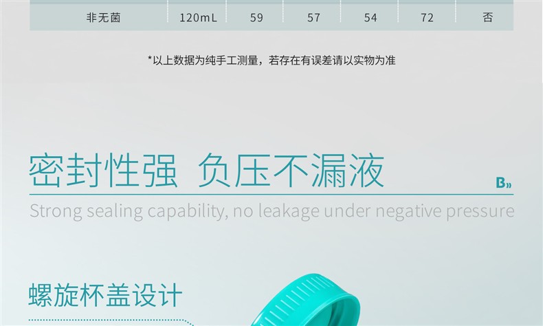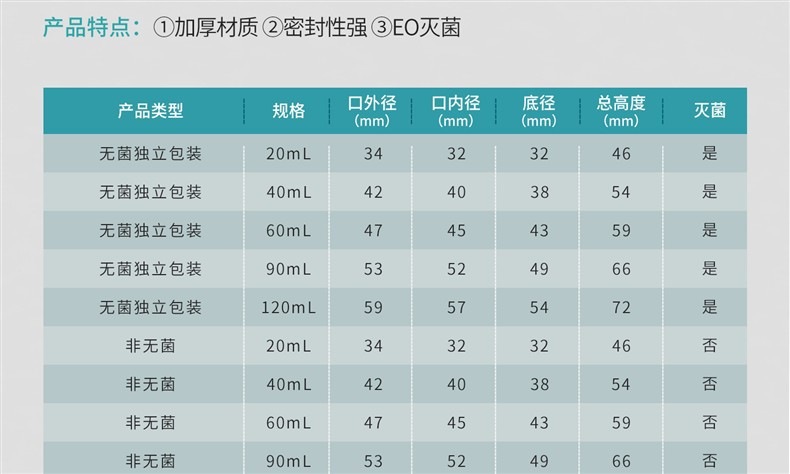 容量 【非无菌】采样杯20mL20个/袋,【非无菌】采样杯40mL20/袋,【非无菌】采样杯60mL20/袋,【非无菌】采样杯90mL10个/袋,【非无菌】采样杯120mL10个/袋,【无菌】采样杯20mL10个/袋,【无菌】采样杯40mL10个/袋,【无菌】采样杯60mL10个/袋,【无菌】采样杯90mL10个/袋,【无菌】采样杯120mL10个/袋,【非无菌】可叠采样杯120mL50个/套,【非无菌】可叠采样杯120mL300个/6套/箱,【非无菌】手掀盖尿杯40mL50个/袋,【非无菌】螺旋盖尿杯40mL50个/袋,【非无菌】螺旋盖尿杯60mL50个/袋,【非无菌】手掀盖大便杯40mL50个/袋,【非无菌】螺旋盖大便杯40mL50个/袋,【非无菌】螺旋盖大便杯60mL50个/袋,【非无菌】软尿杯中号500个,【非无菌】软尿杯大号500个