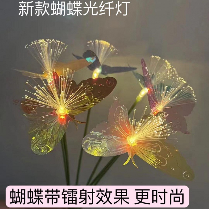 ソーラーLED光ファイバー蝶6頭芝生フロアライト屋外庭ガーデンベランダキャンプ装飾ライト