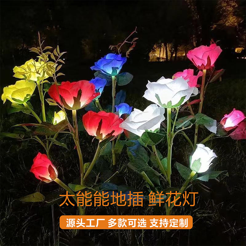 LED太阳能灯仿真花草坪地插灯户外防水花园别墅装饰灯玫瑰花超亮