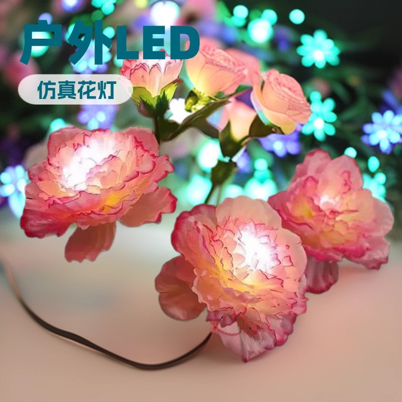 太阳能牡丹花灯户外草坪灯别墅庭院阳台装饰花太阳能庭院小彩灯