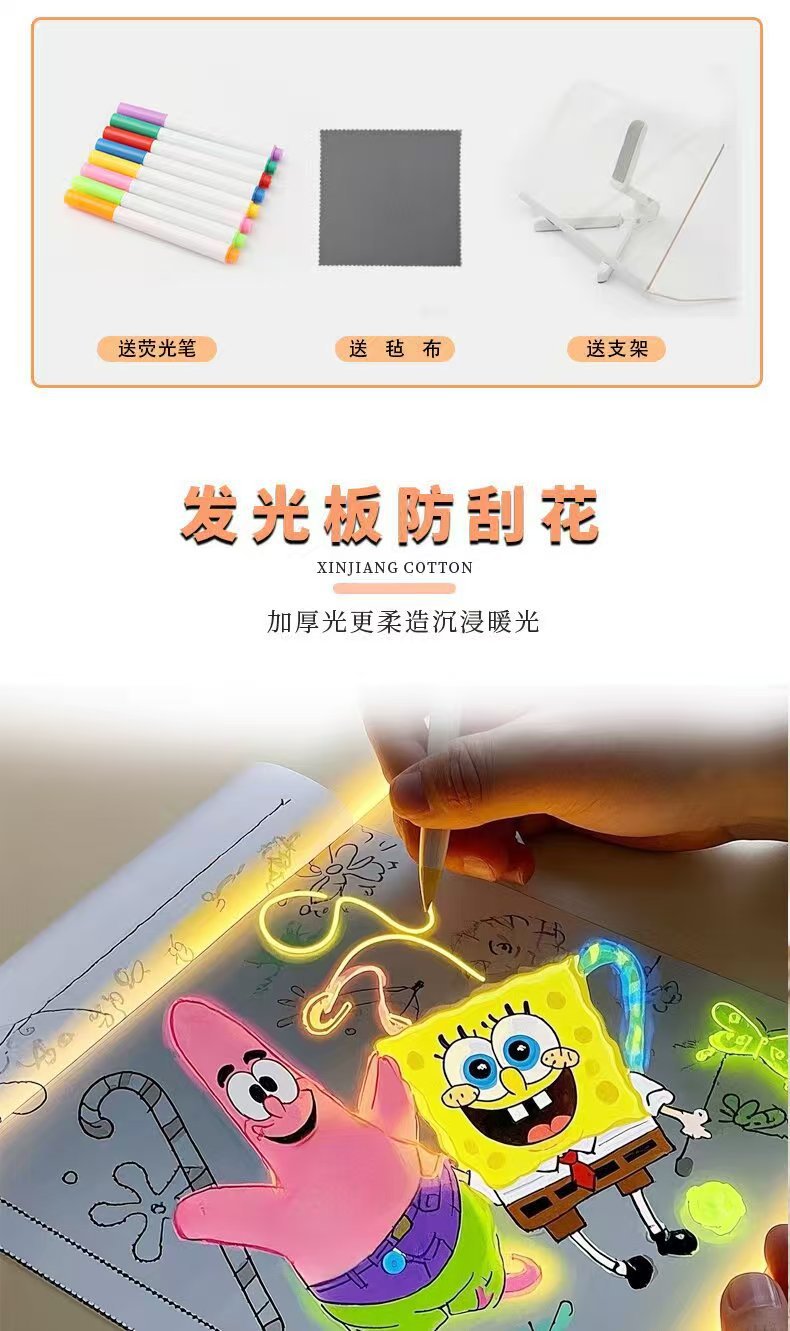 【护眼柔光】亚克力高透儿童发光画板DIY手写板涂鸦画板送笔擦