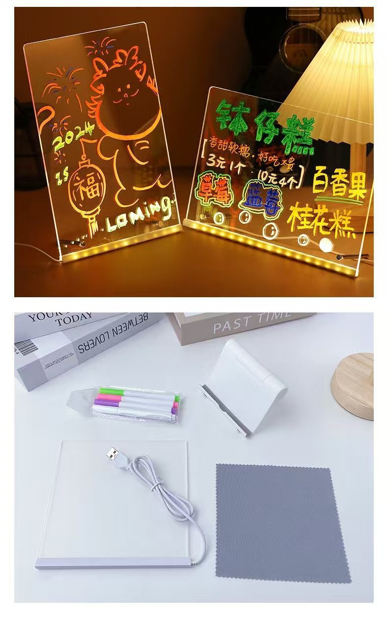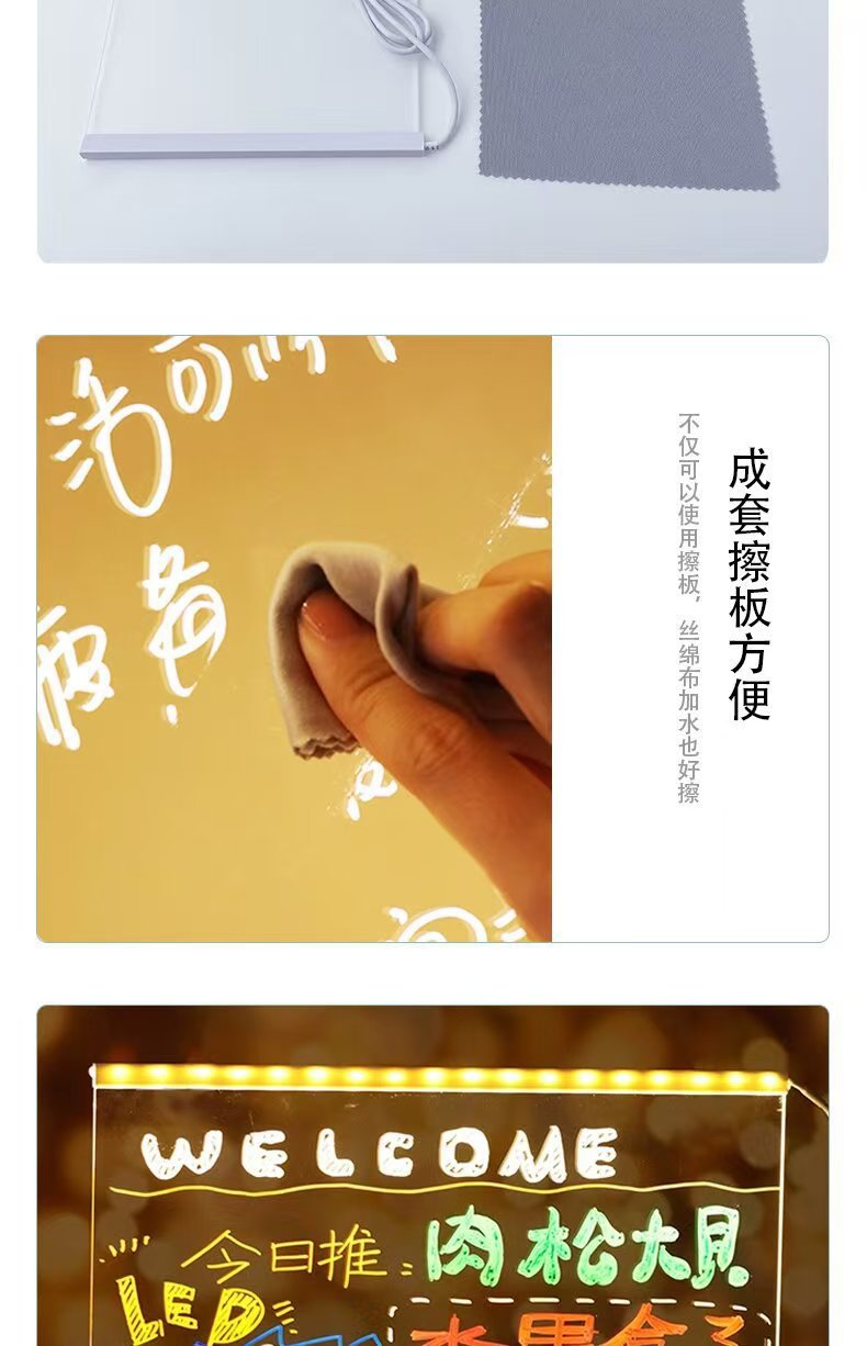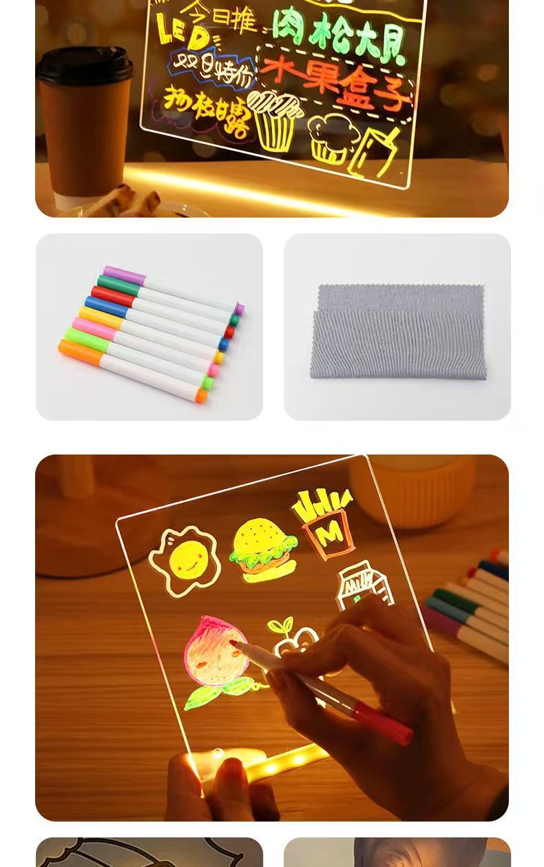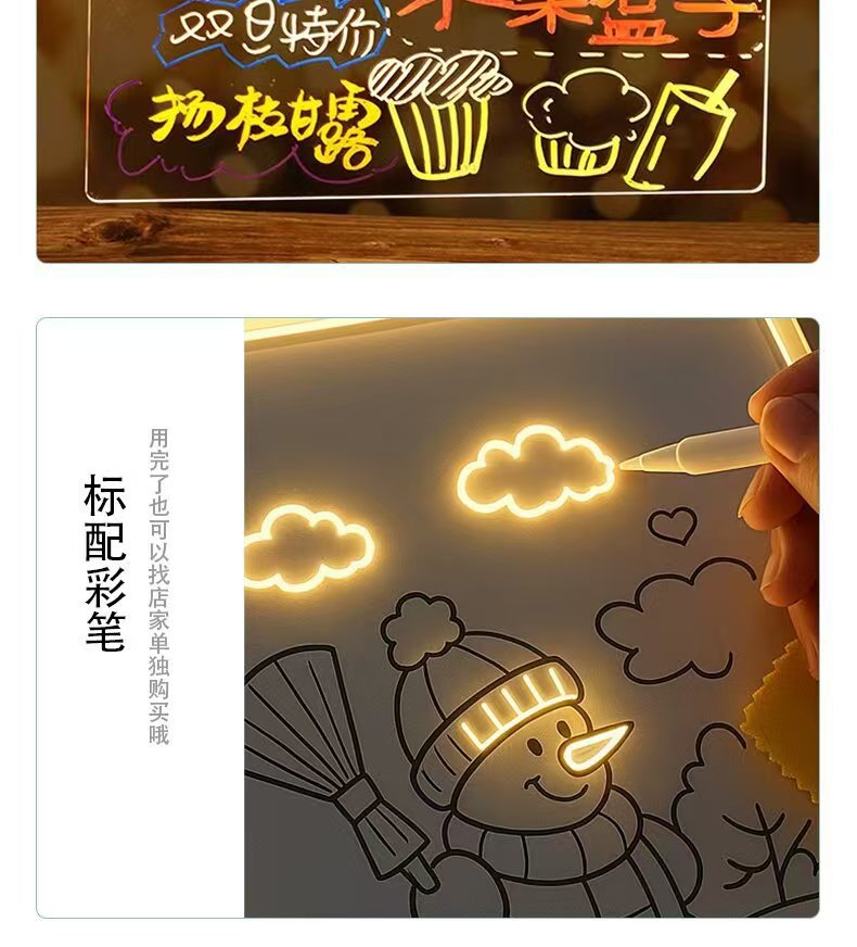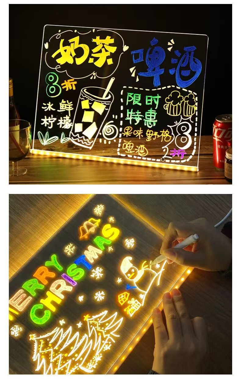 可擦透明亚克力发光画板广告灯牌荧光板画画神器学生写字手绘板套