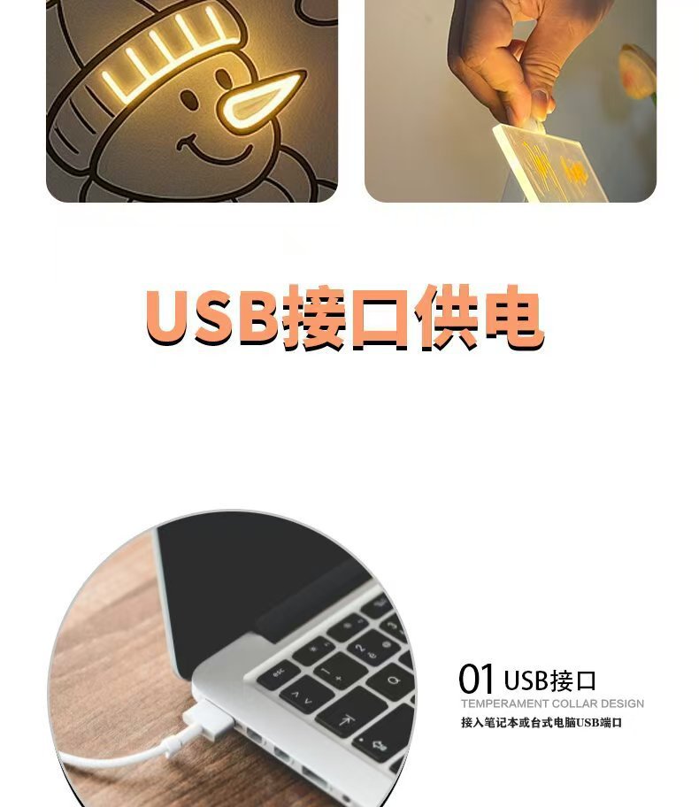 クロスボーダー発光アクリル透明板白板DIY手書き小夜灯祝日装飾灯usb灯絵画デスクトップ
