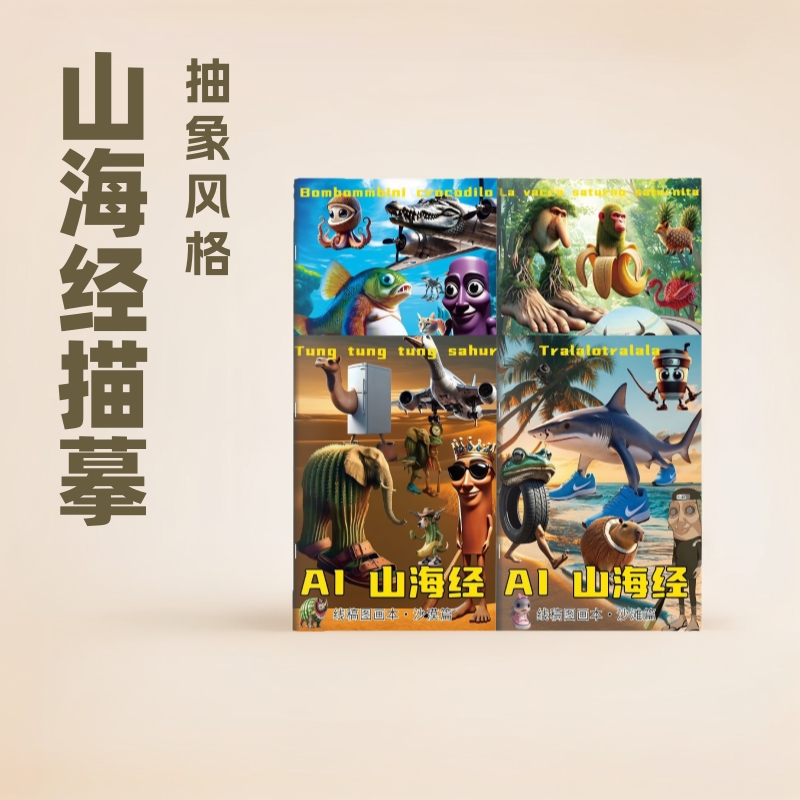 外国の山と海の経典 tungtungsahur トンゴ木の棒人間のトレースブック抽象的なサメの落書き絵画ブック