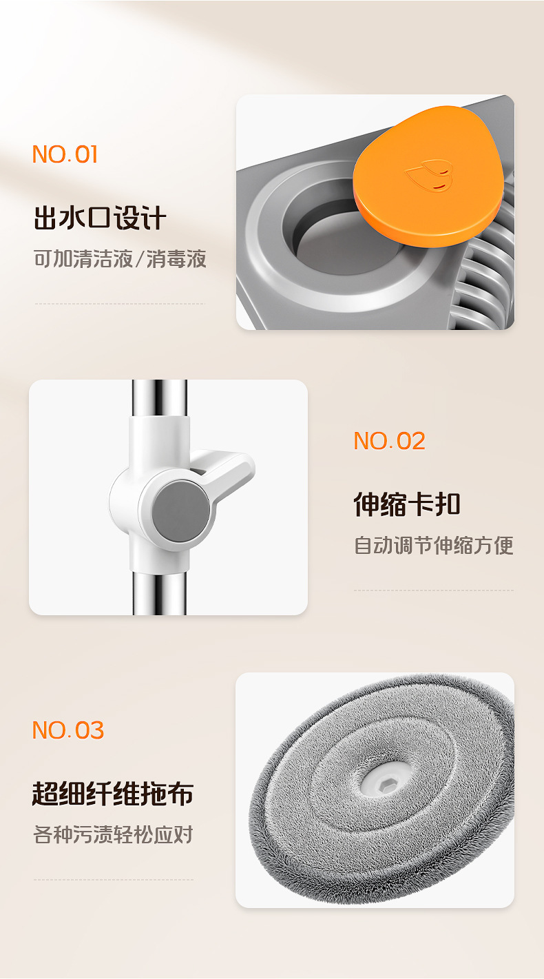 【佳助手大客先独占】汚れ分離回転水滴モップ自動脱水家庭用三頭共通