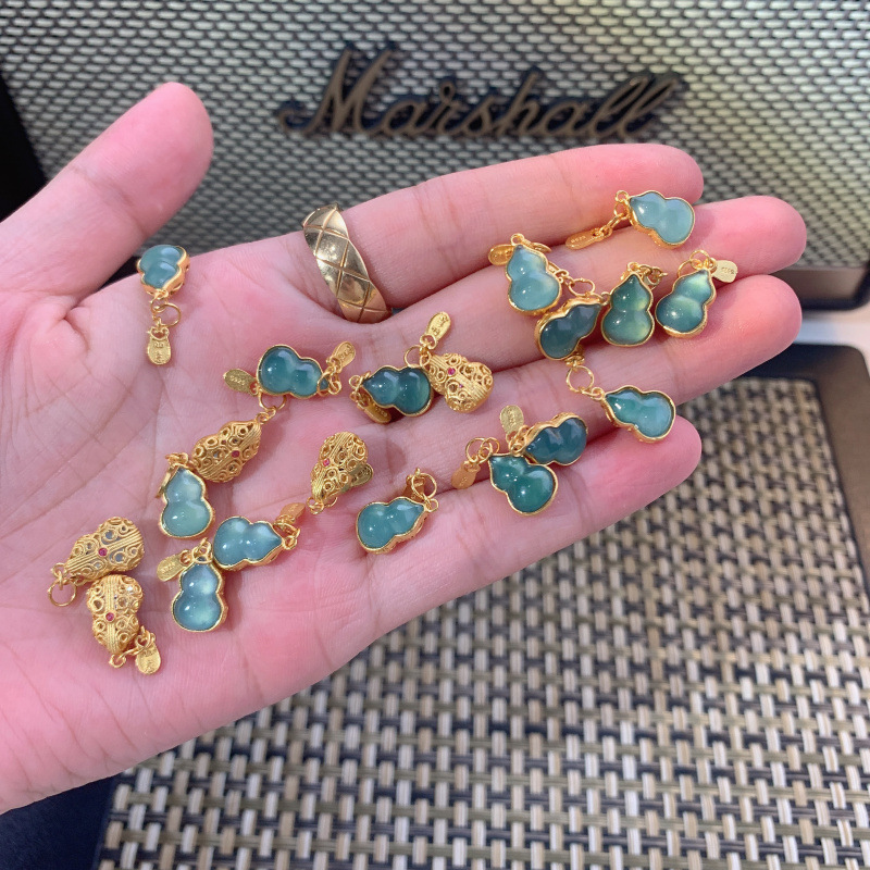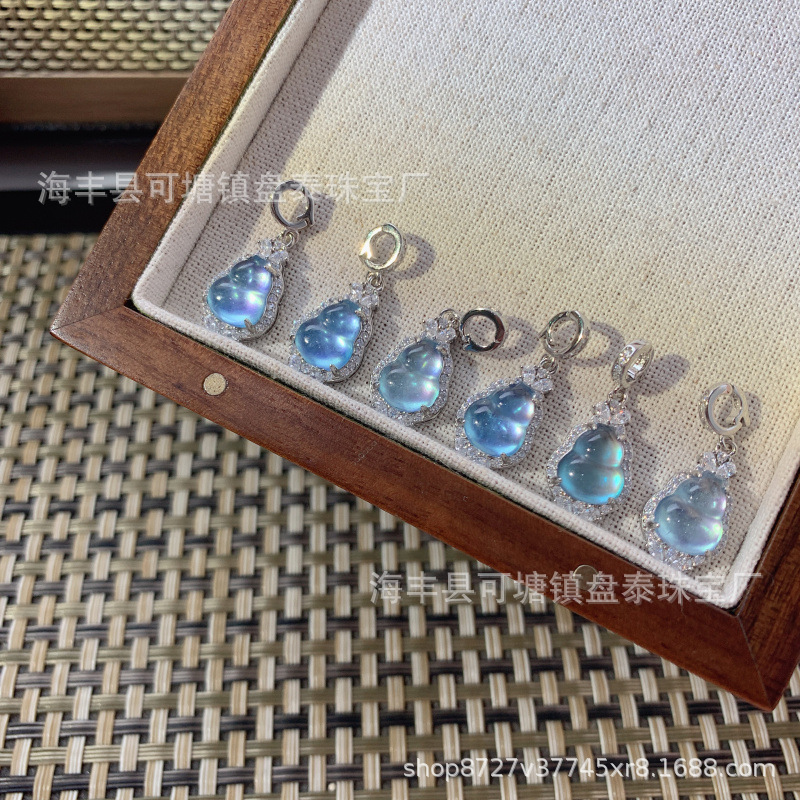 メーカー卸売り天然危険材料藍水翡翠ひょうたん吊り下げ小提溜925銀diy手作り部品
