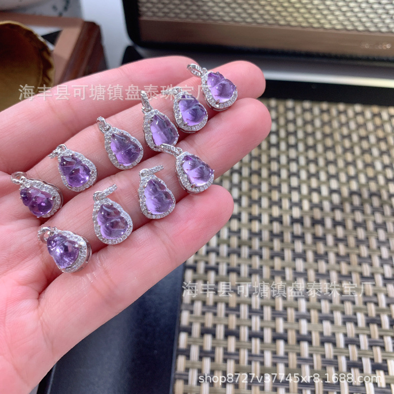 メーカー卸売り天然紫水晶ひょうたんペンダントS925銀モザイク