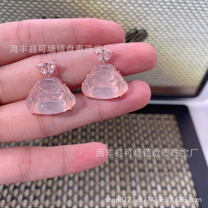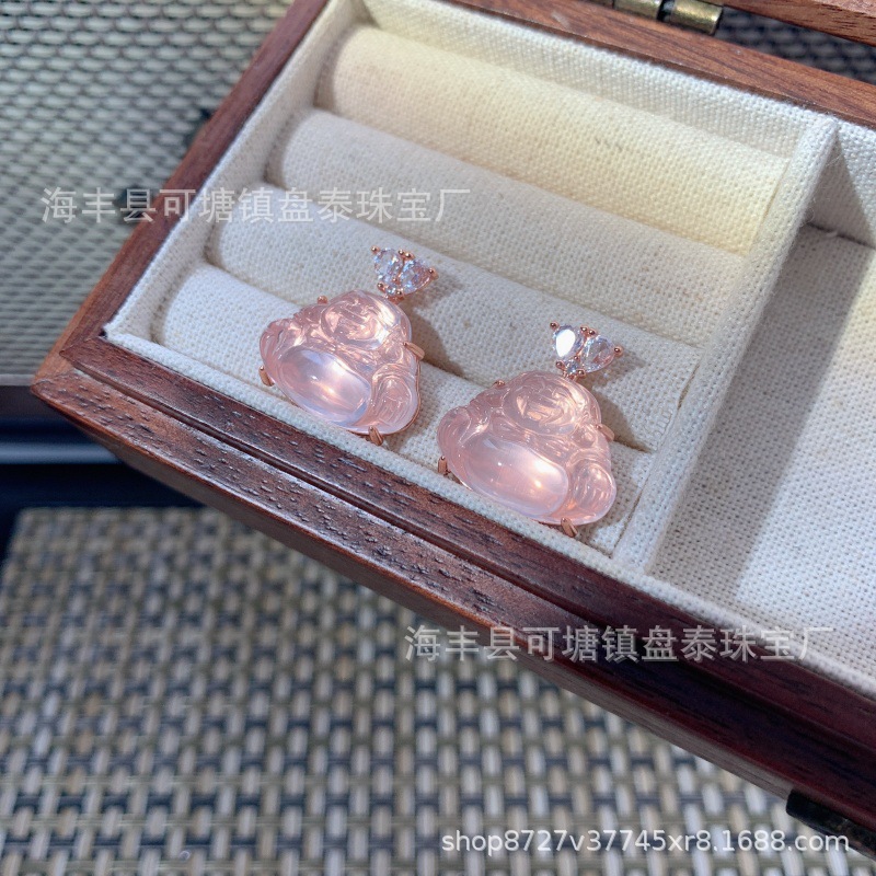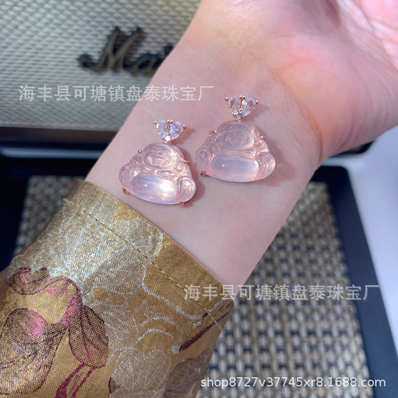 厂家批发 天然粉水晶佛公吊坠 S925银镶嵌