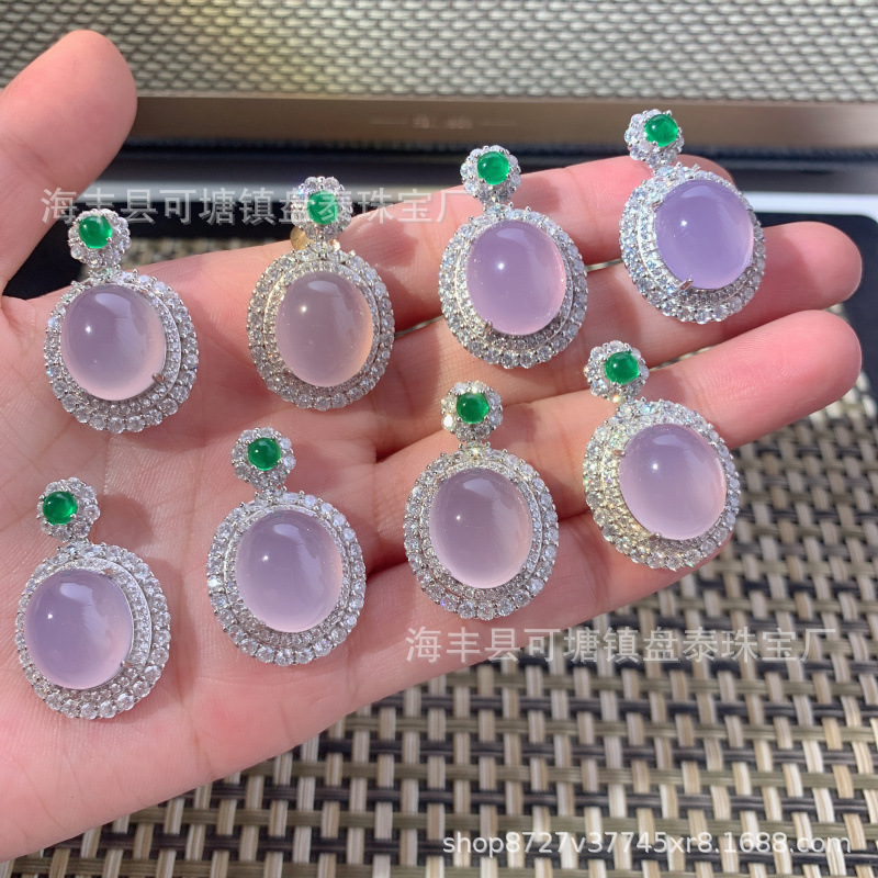 メーカー卸売り天然ブラジル紫玉髄鳩卵ペンダントS925銀モザイク