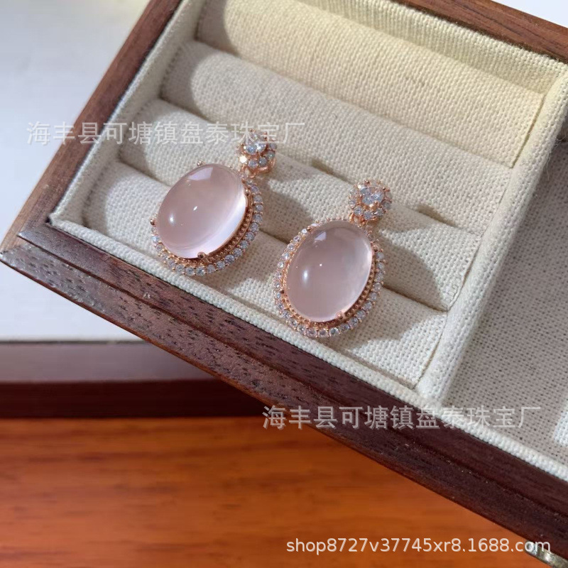 厂家批发 天然粉水晶粉晶鸽子蛋吊坠 S925银镶嵌
