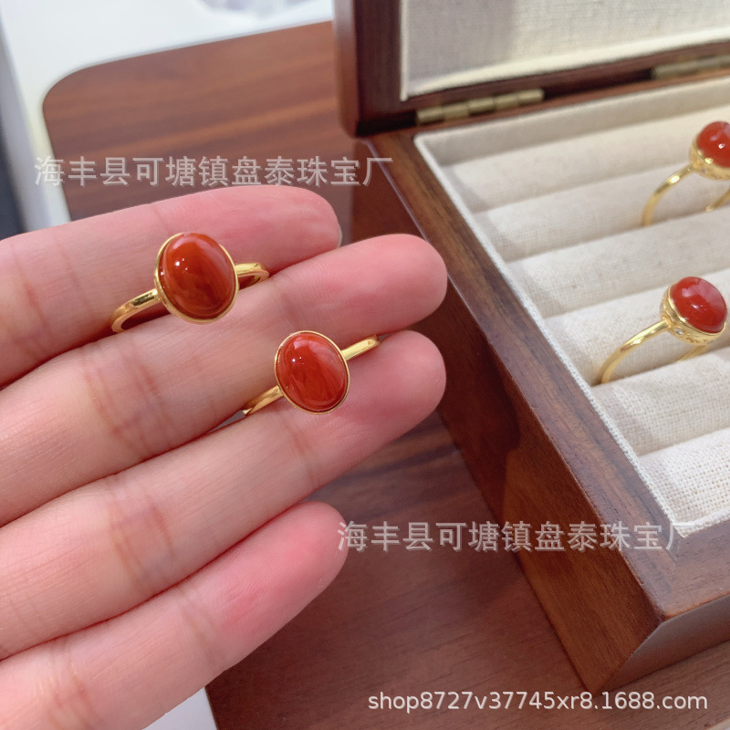 メーカー卸売 天然四川産南紅石リング S925シルバー象嵌