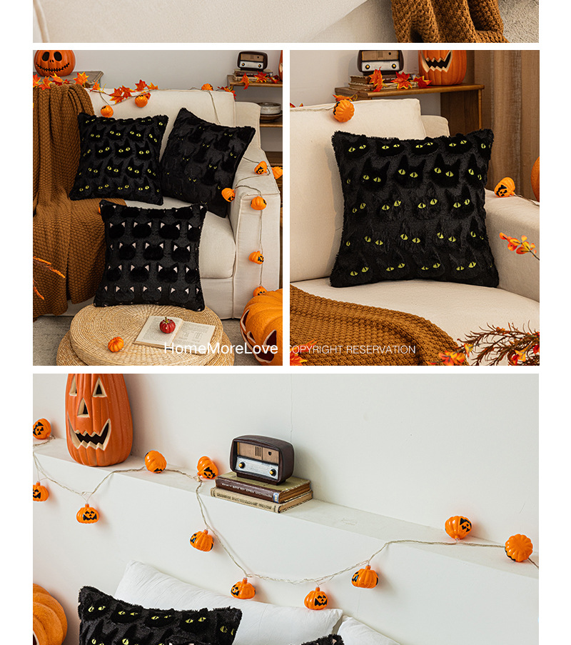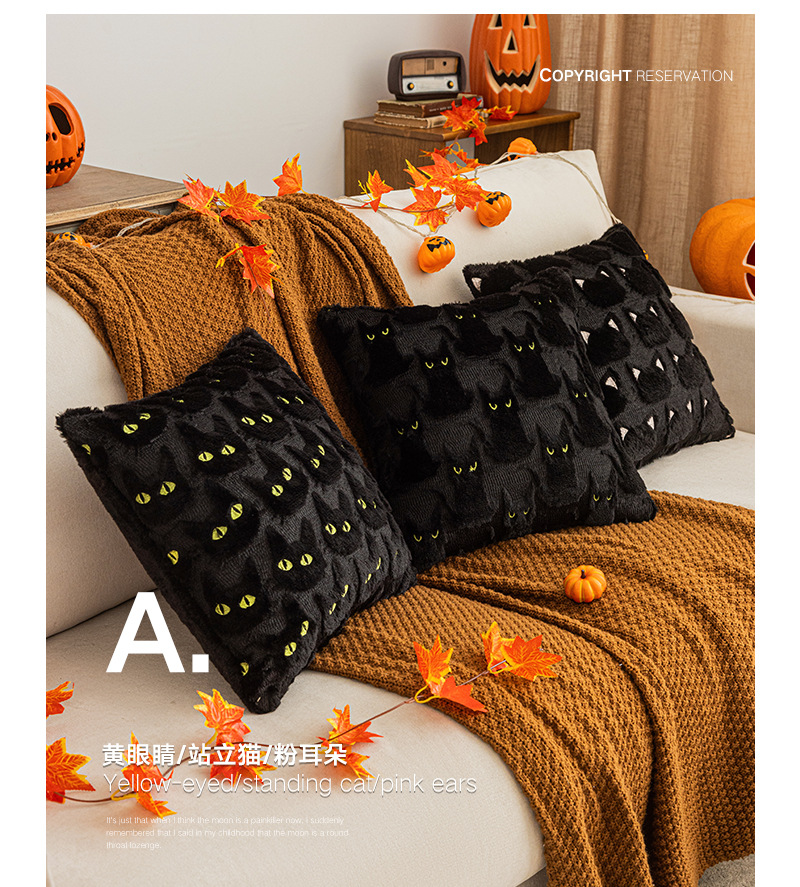 万圣节黑猫毛绒抱枕节日装饰刺绣抱枕套客厅沙发靠垫正方形靠枕套