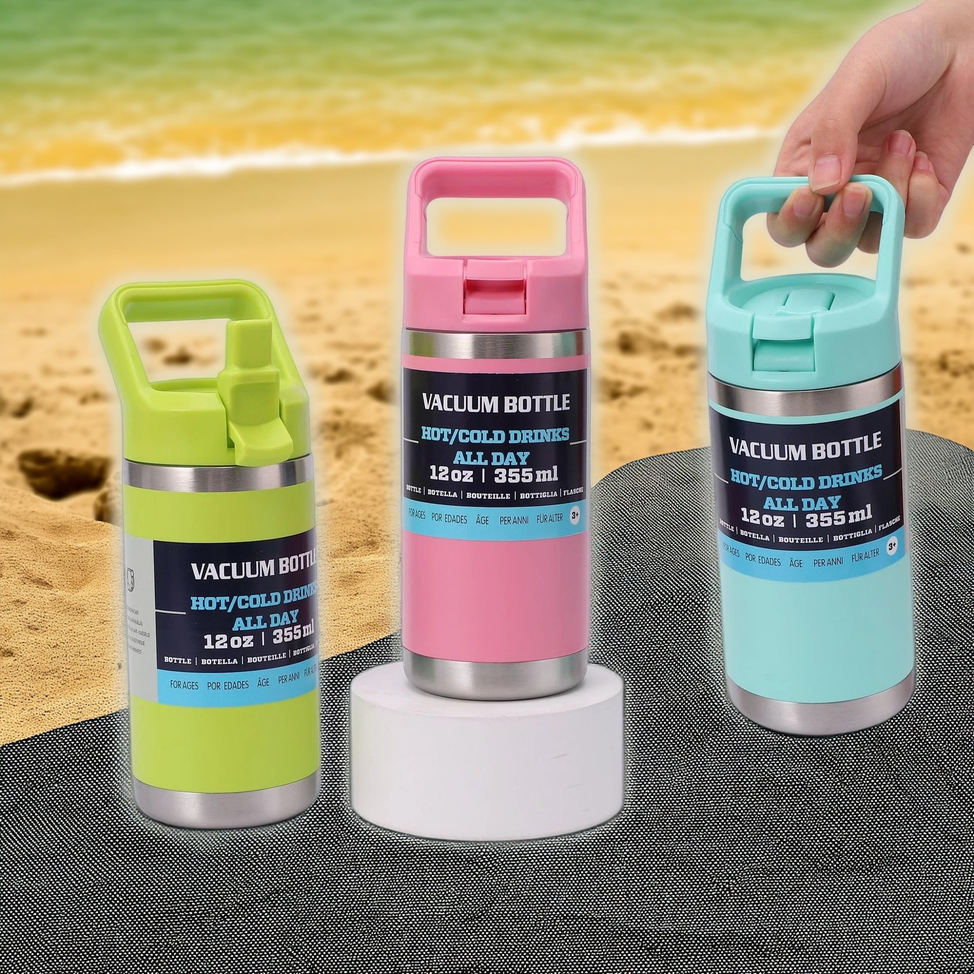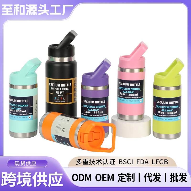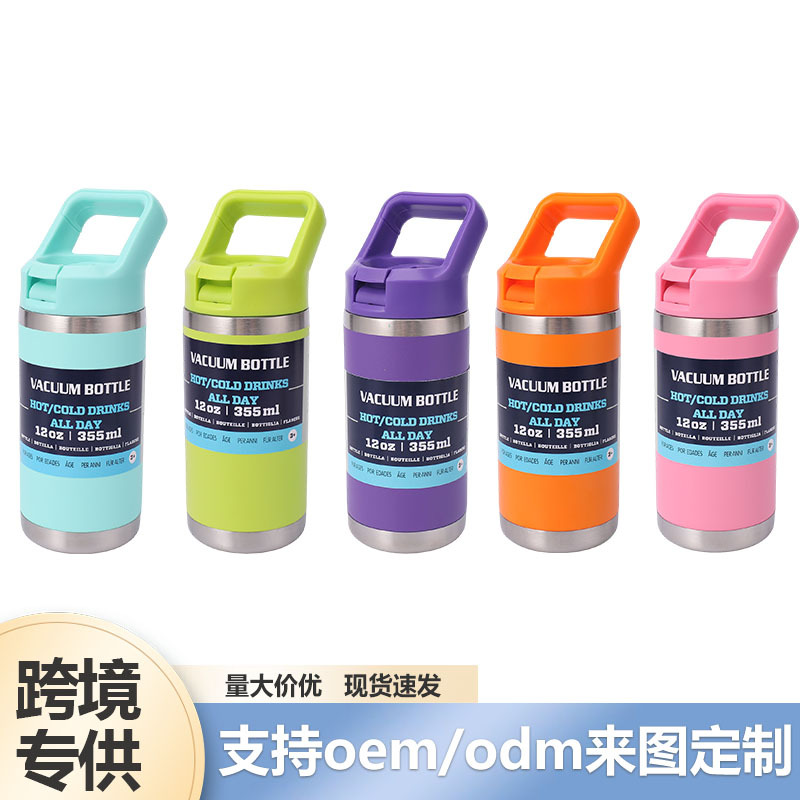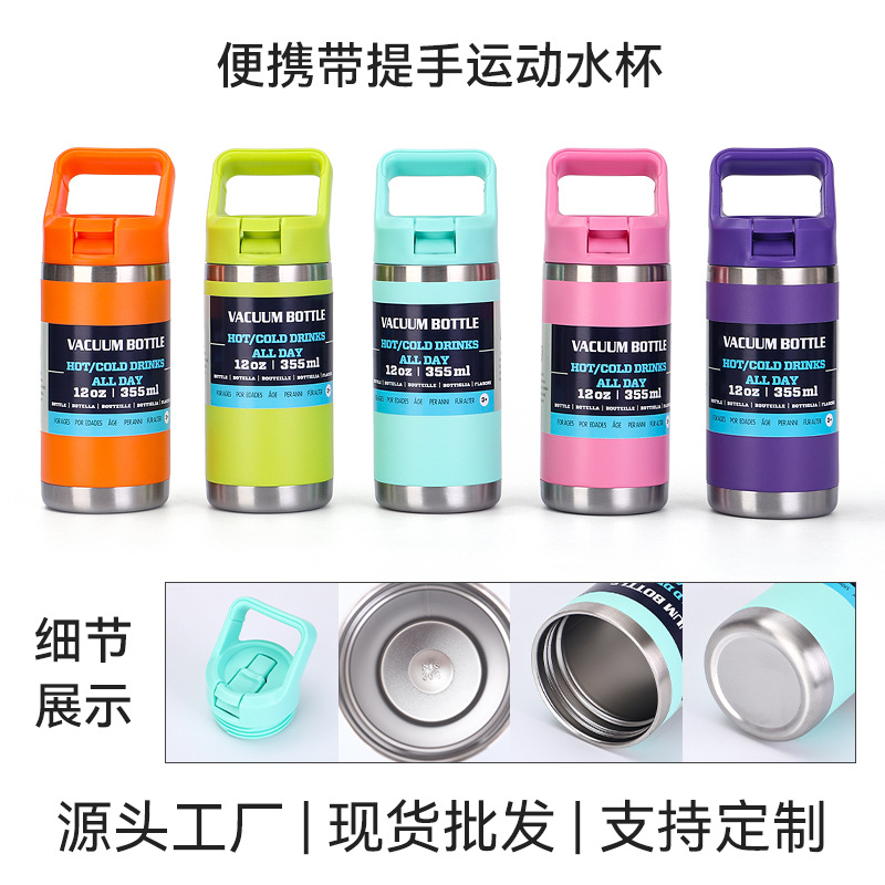 厂家直供12oz吸嘴杯 双层不锈钢保温杯液体同款提手吸嘴运动杯