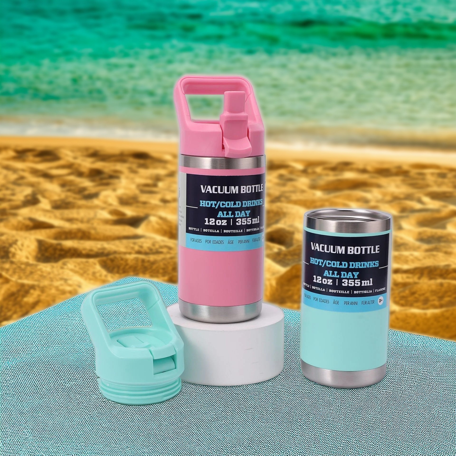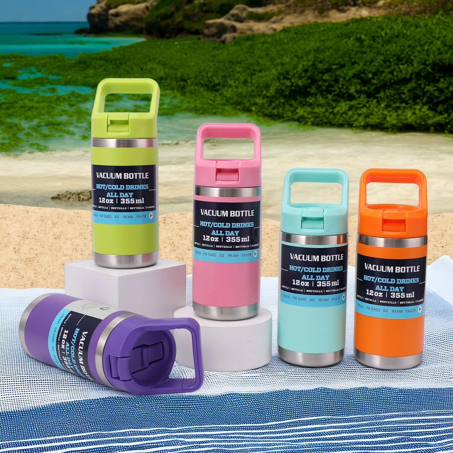 アマゾンの起爆金は12オンス子供保温カップ二重304ステンレス宇宙ポットのカラー取っ手でロゴを注文できる