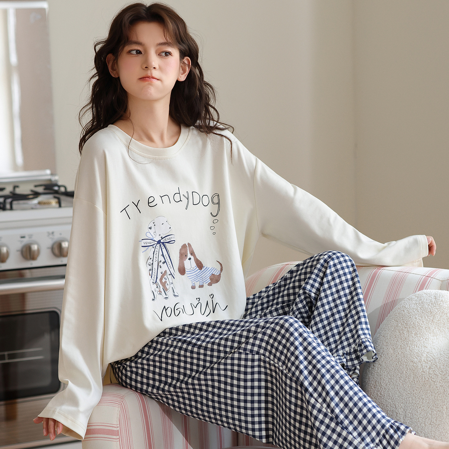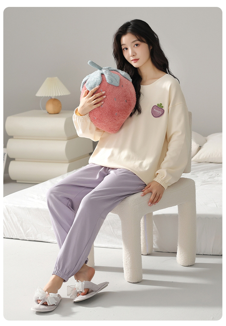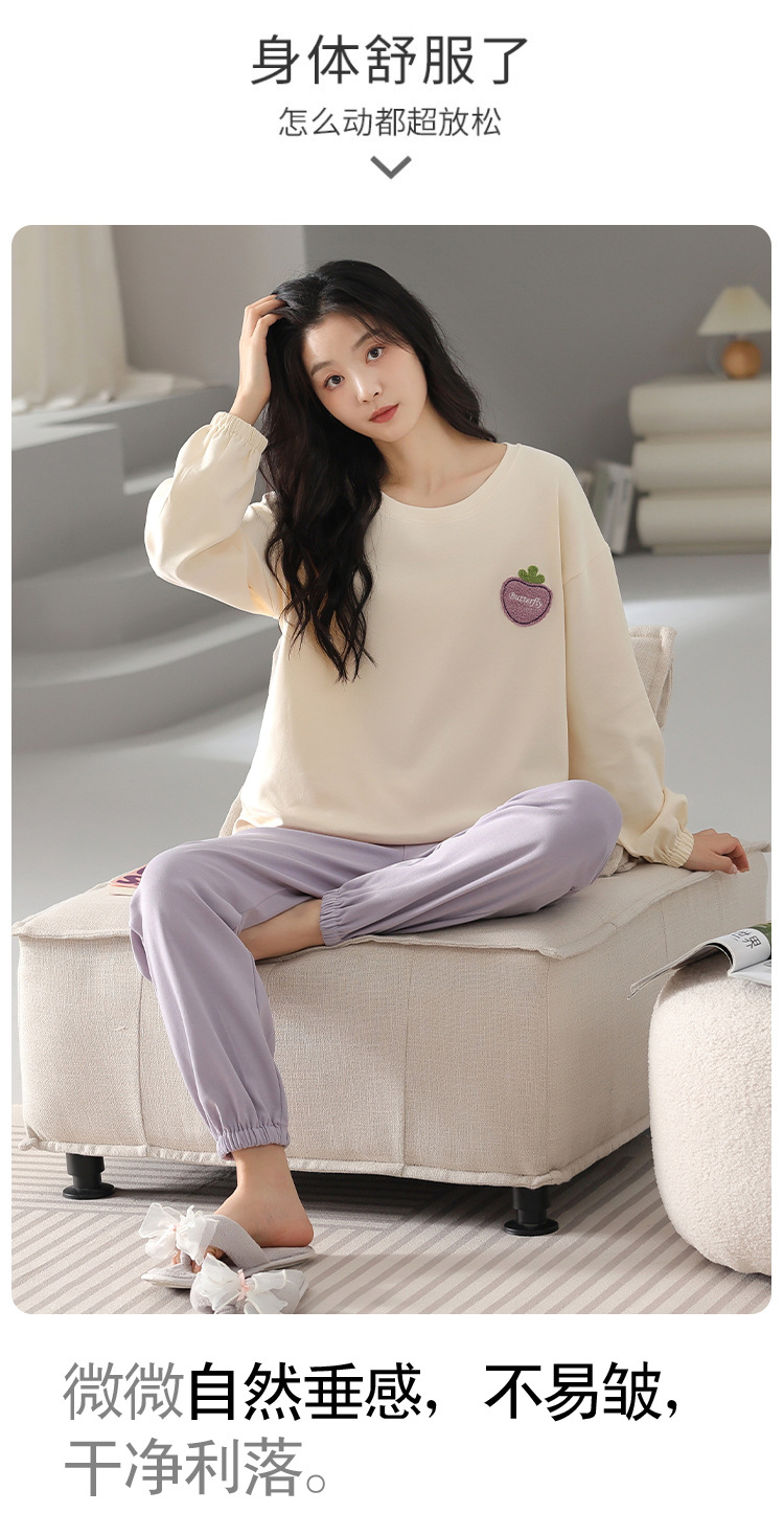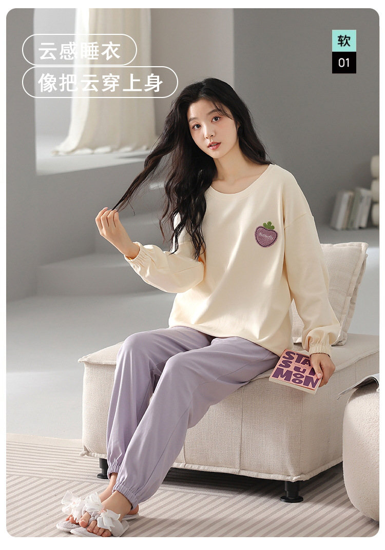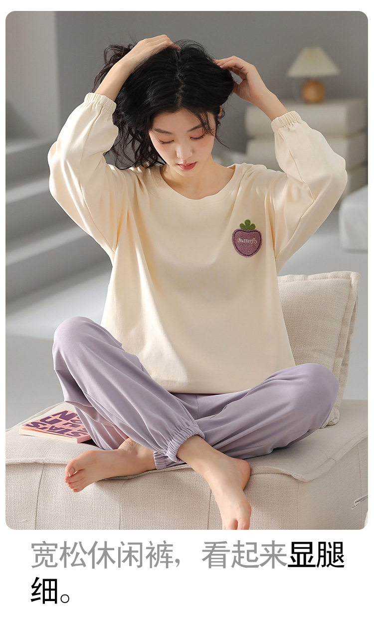 100% 純綿パジャマレディース秋冬長袖プルオーバーゆったり大きいサイズins風韓国版レディースホームウェアセット