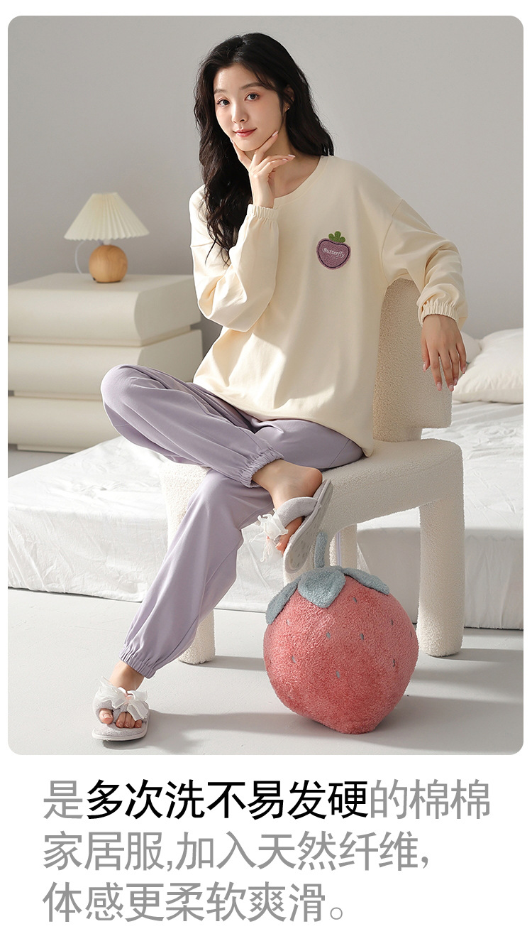 A類抗菌100% 純綿2025新型パジャマ女性秋冬長袖ズボンは家庭服女性を着ることができる