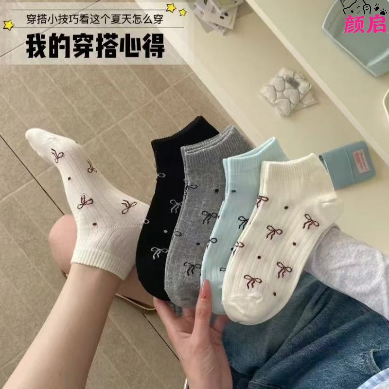 2025起爆金iu系蝶ネクタイ靴下女子ソックス春夏薄手綿靴下日系少女バレエ風
