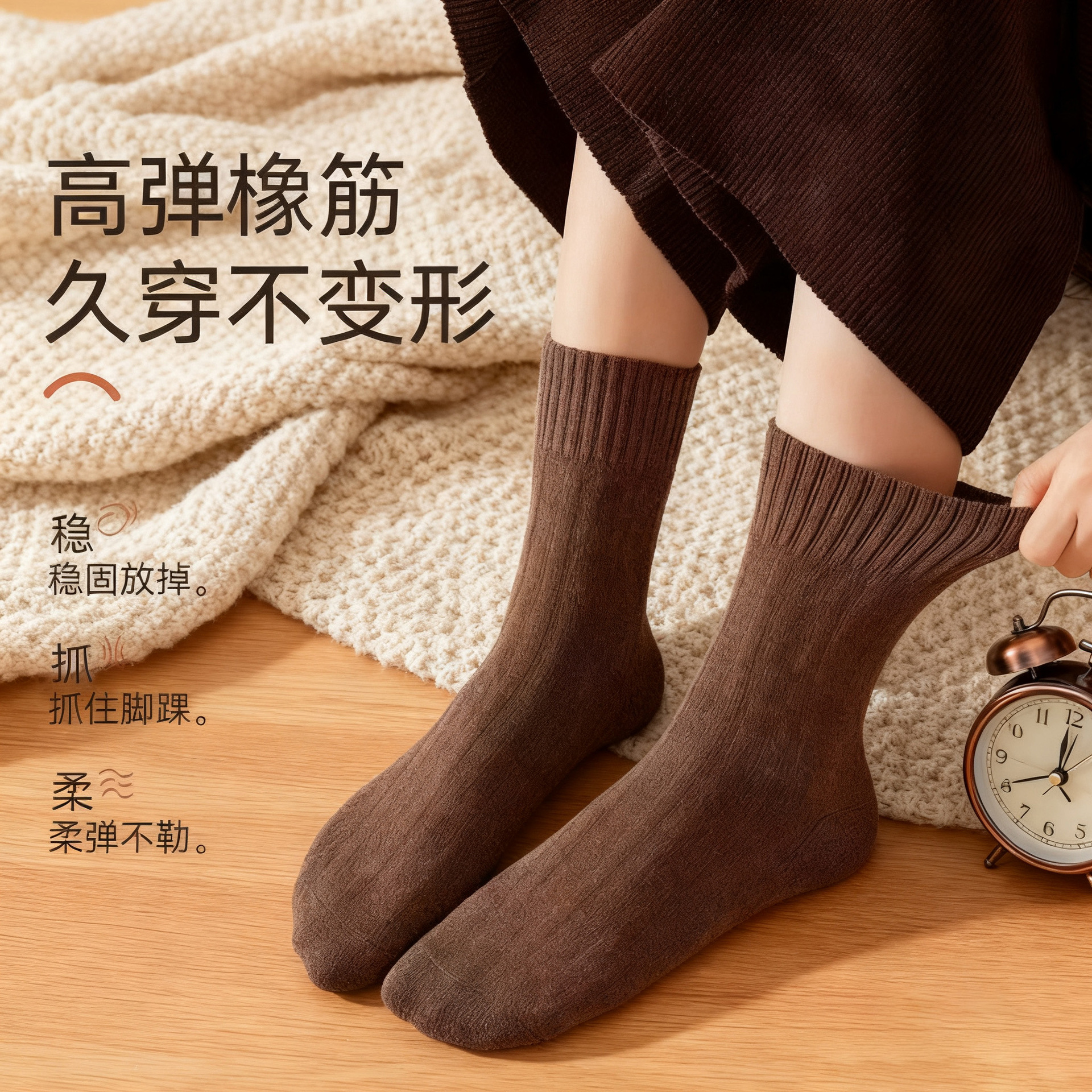 オールシーズン対応の女性用ソックス、パイルソックス、綿ミッドカーフソックス、コーヒー系カーフソックス、暖かい女性用ストッキング、多用途