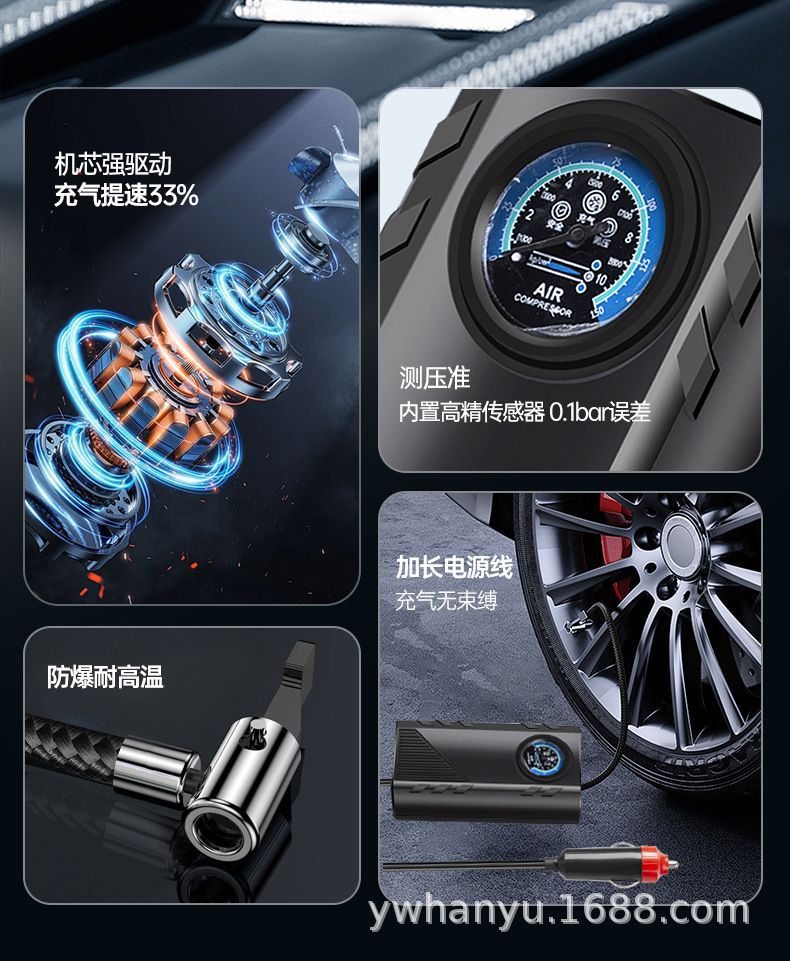 车载无线充气泵便携式电动车打气泵智能轮胎高压大功率充气泵批发