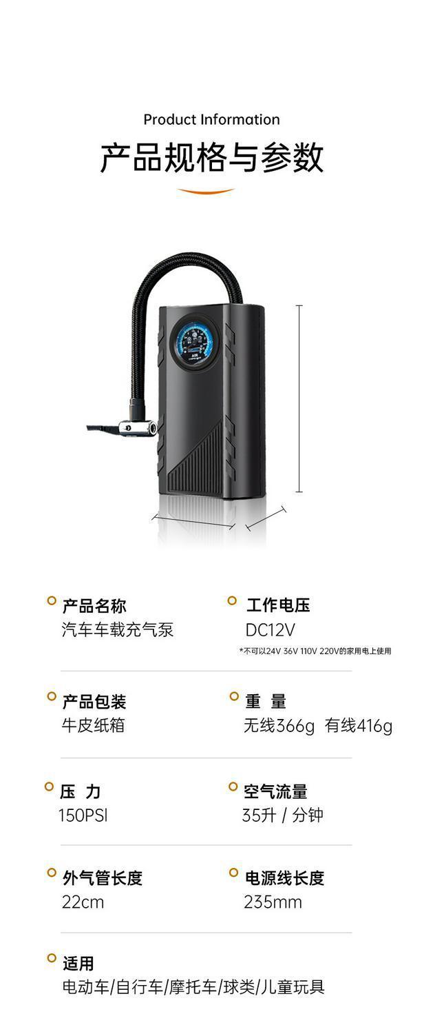 车载充气泵手持汽车充气泵12V多功能电动充气泵便携式打气筒