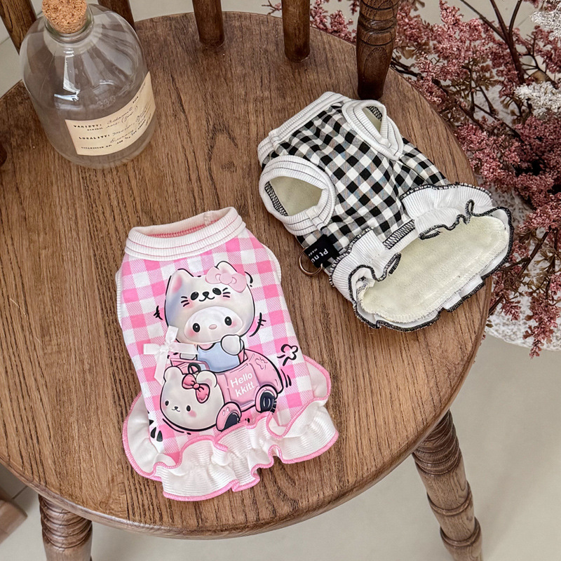 2025新款卡通印花格加绒款秋冬宠物狗狗猫咪家居可牵引衣服