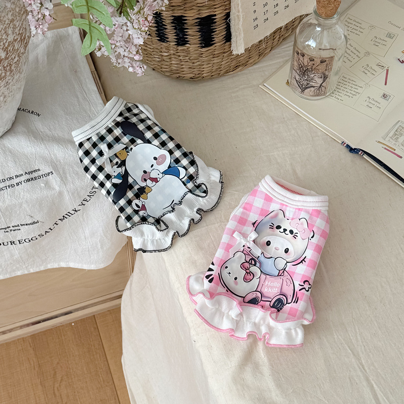 オリジナル新作ペット秋冬用インナーシャツ 犬猫用フェイクツーピースフリルスカート テディ・ビション用秋冬服