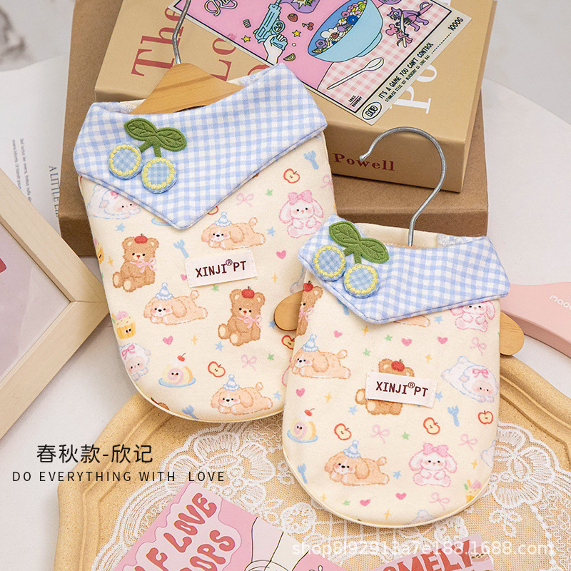 25春秋款宠物猫咪小型犬狗狗衣服刺绣樱桃牛仔公主裙棉质秋冬打底