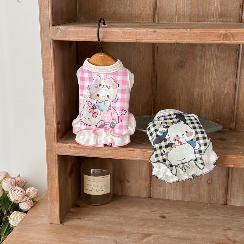 颜色 粉白KT印花格,黑白帕恰狗印花格,批发店铺不支持退款,粉白蛋糕狗,黑白蛋糕狗
