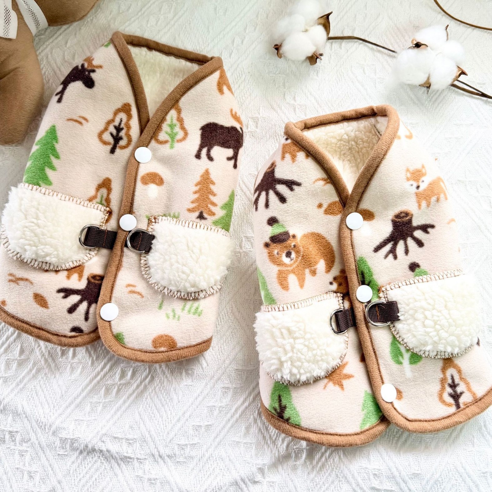 25秋冬新款宠物狗狗猫咪衣服加绒居家服可牵引 森林小兔