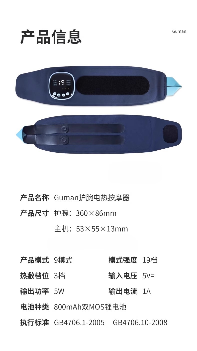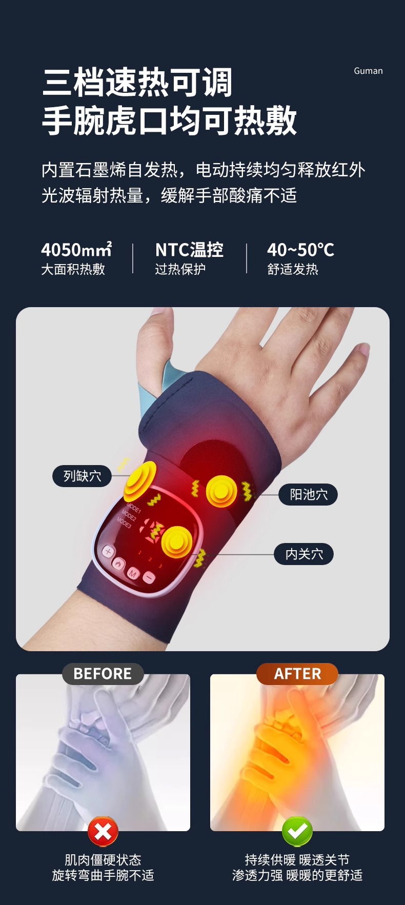 Guman手腕按摩仪手部按摩器电热护腕加发热敷腱鞘疼腕管综合症护