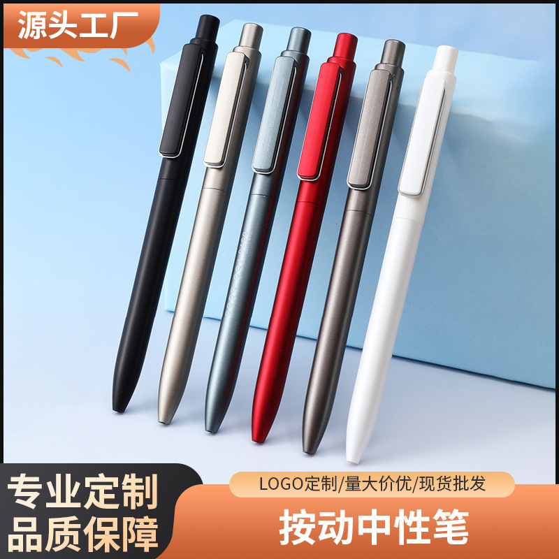 新款广告笔LOGO商务签字笔刻字按动中性笔磨砂金属质感按动笔批发