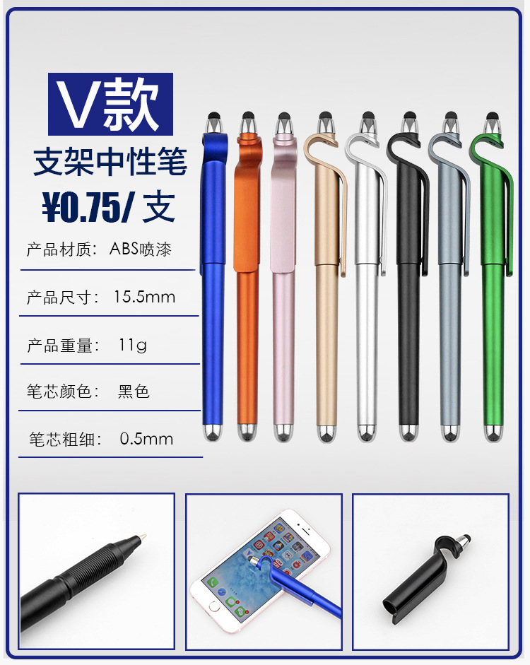 広告ペンカスタムギフトペンカスタマイズ中性サインペン伸縮携帯電話スタンド二次元コード多機能金属ペン