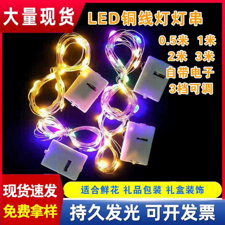 卸売 LED ボタン電池小さな白いボックスカラーフラワーストリングライトクリスマスツリー装飾銅線雰囲気ストリングライト