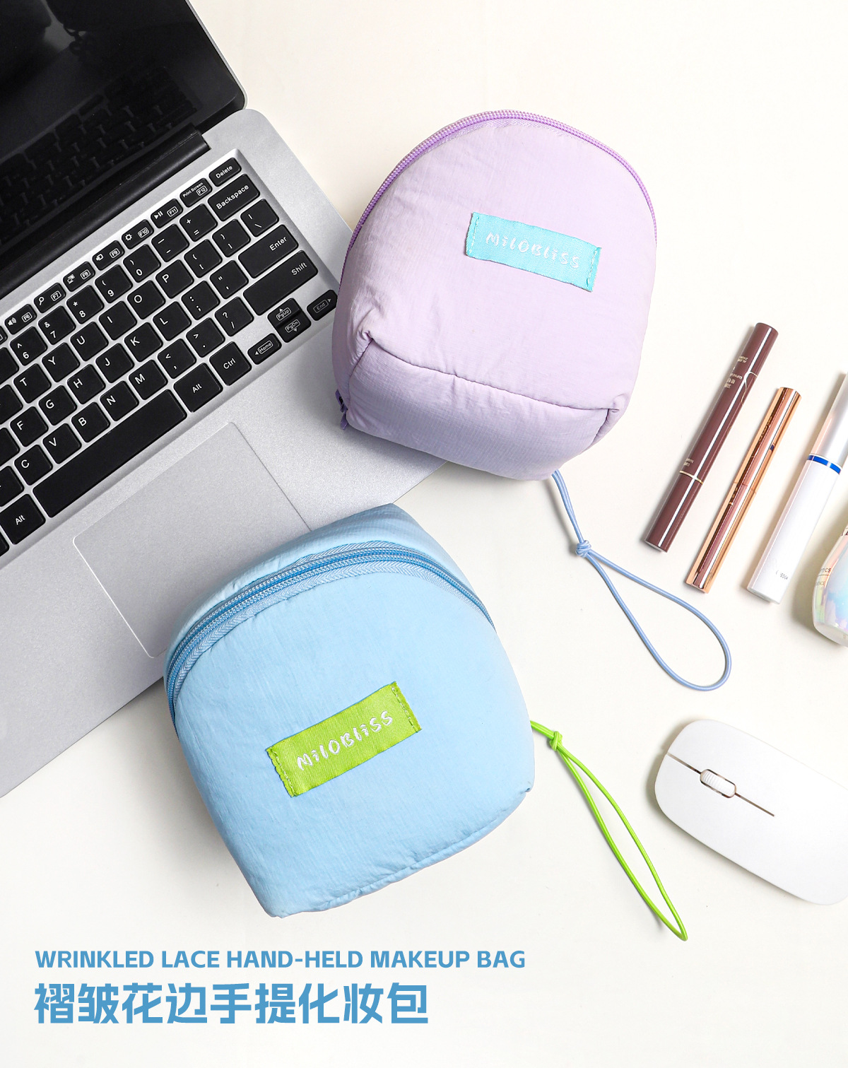 クロスボーダー新品シワポーチ収纳高级感高颜値化粧バッグレディース化粧品収纳バッグ洗面バッグ