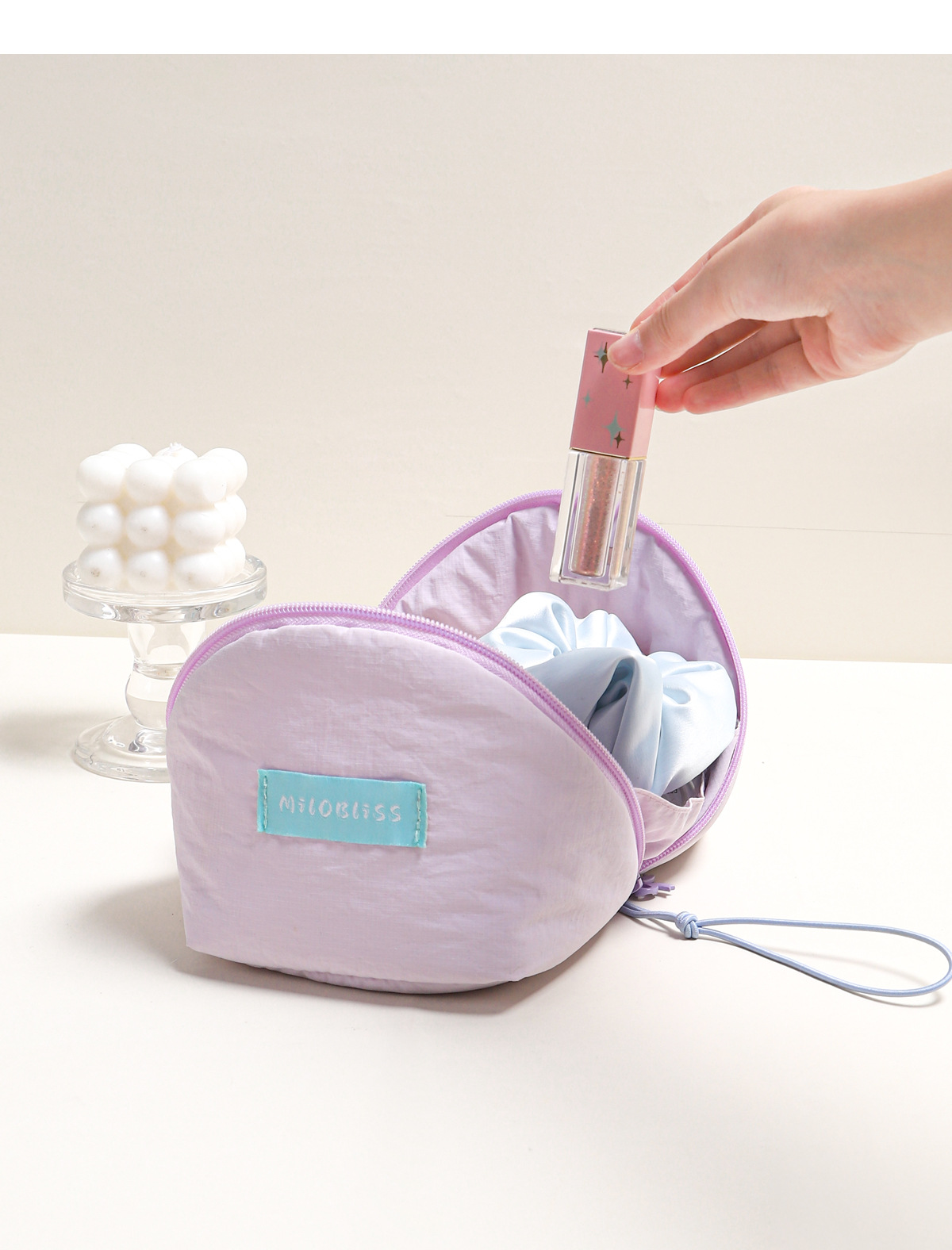 夏の外出にぴったりの高見えポータブル化粧品バッグ、大容量のポータブルストラップ付きリボンクラウド化粧品バッグ