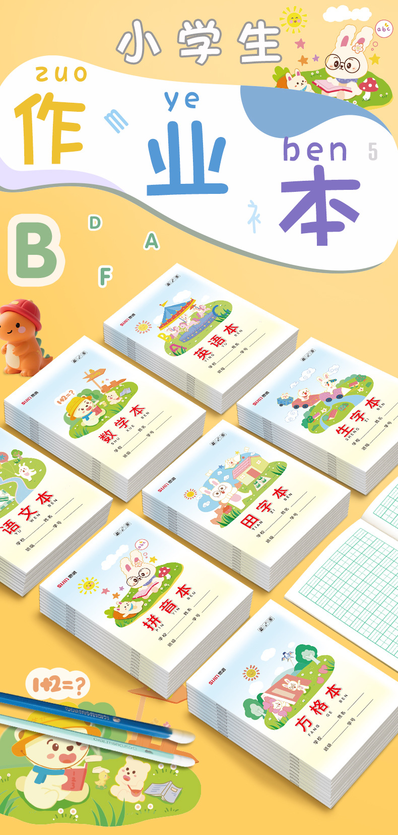 卸売り貴広24k小学生の宿題帳単行生字国語田字数学英語絵本漫画系