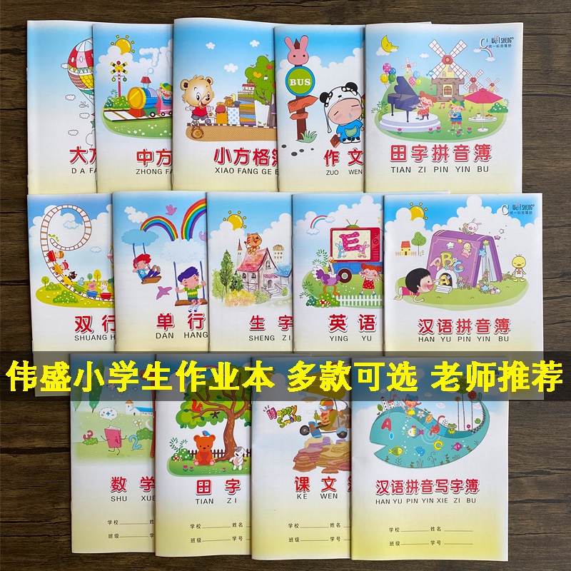 伟盛作业本英语本汉语拼音写字本方格本田字数学单双行作文簿本子
