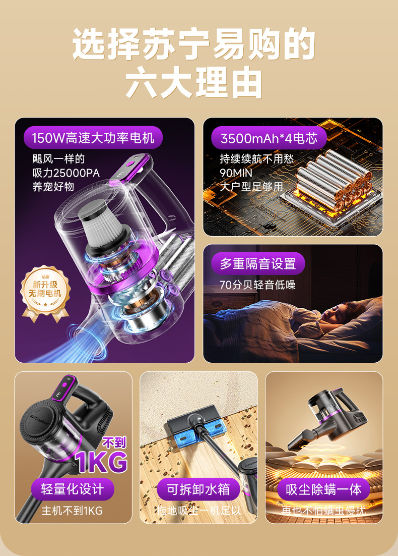 无线家用吸尘器强力吸 400W无刷电机25Kpa大吸力宠物多功能吸尘器