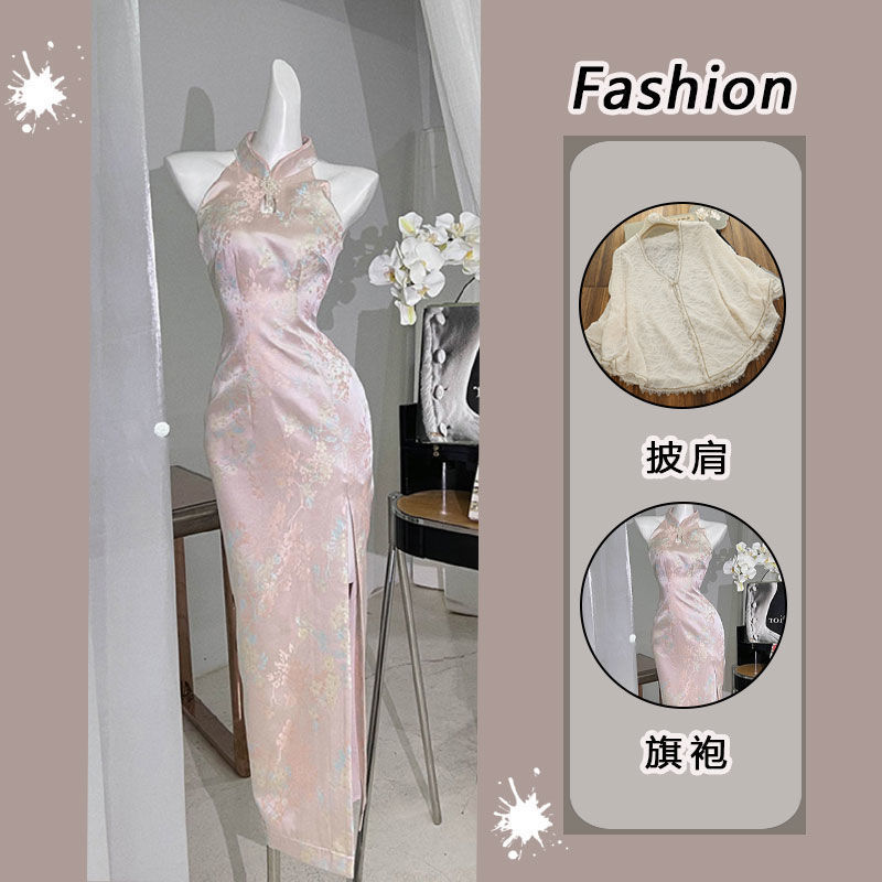 2023春装新中国式富家小千金改良チャイナドレス高級感小香風ピンクワンピース女